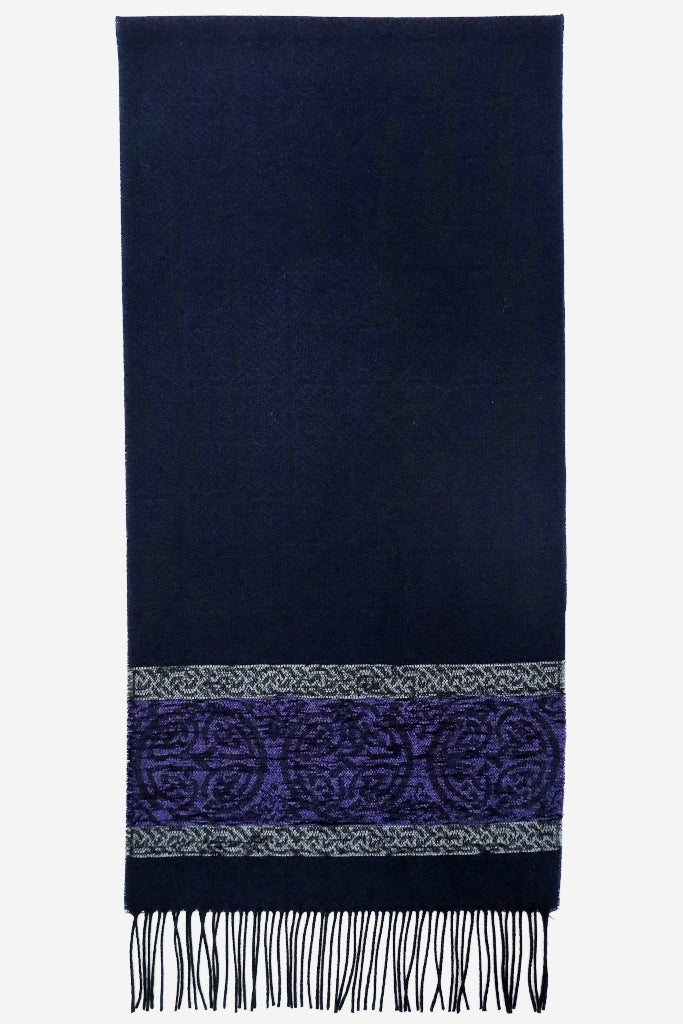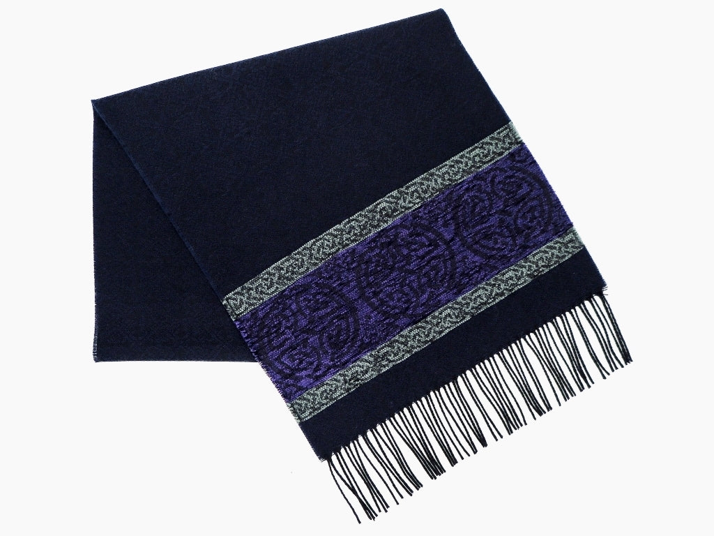 Celtic Knot Border Jacquard woven scarf in Worsted Wool and luxurious Chenille. Dimensions: 35 x 170 cms including Fringes Composition: 45% Wool/55% Chenille An authentic Scottish product exclusively designed and woven by Calzeat of Scotland. |