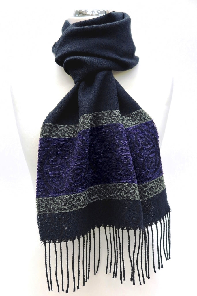The endless or mystical quality of Celtic Knots have been utilized in this scarf design to suggest infinity or time without end.