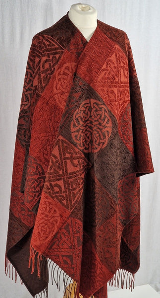 Celtic Knot Russet Ruana in a luxurious soft blend of Chenille and Pure New Wool.