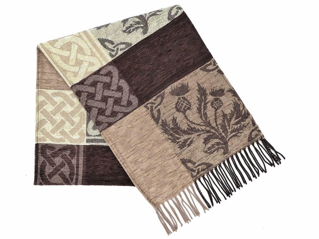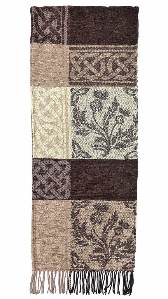 Celtic Knots are combined with Scotland's national flower - the thistle in this beautiful scarf.
