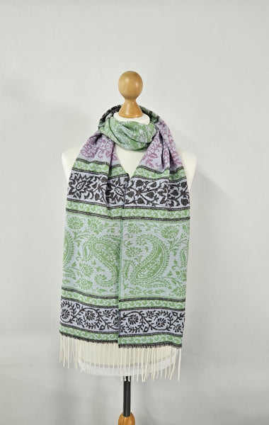 These scarves are handcrafted, so colour variation may occur. Dimensions: 200 x 28cms including fringes. Composition: 62% Wool, 19% Polyamide, 16% Viscose, 3% Cashmere An authentic Scottish product exclusively designed and woven by Calzeat of Scotland. |
