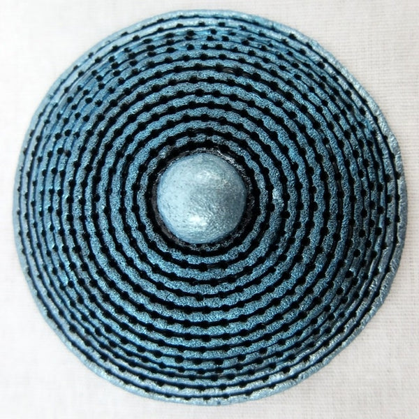 Stunning hand painted Yetholm Shield brooch in gorgeous metallic turquoise blue .