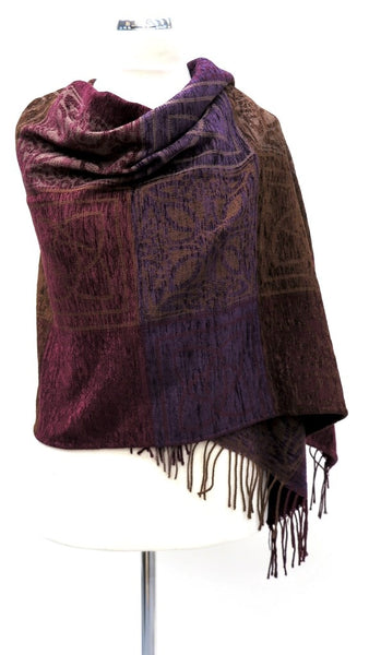 The Brodgar Loganberry is a combination of Chocolate and Berry shades of Wine and Rich Purple. Our scarves are made from our beautiful throws so colour block placement may vary.