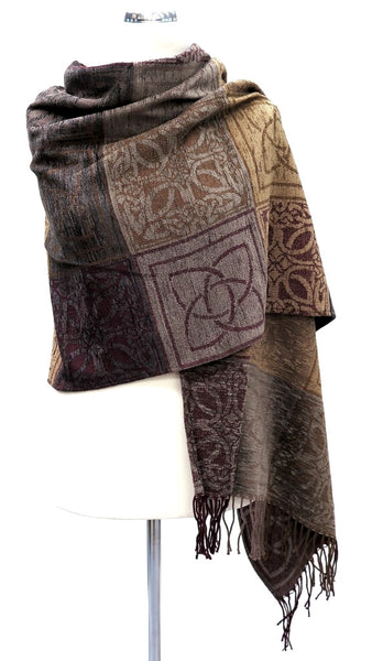 The Brodgar Vintage is a combination of Chocolate, Grey and Mink. Our scarves are made from our beautiful throws so colour block placement may vary.