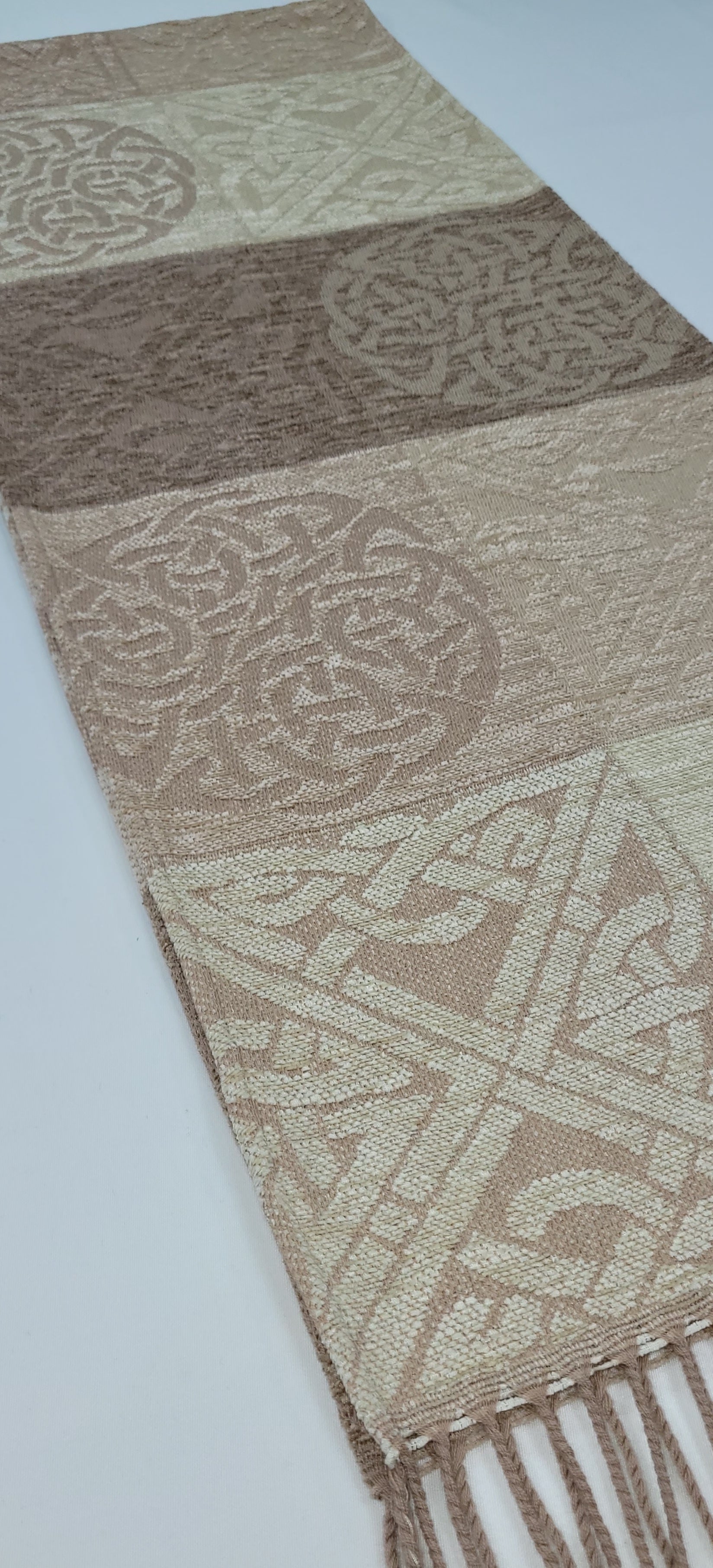 Celtic Knot Jacquard woven scarf in a luxurious soft blend of Chenille and Pure New Wool.