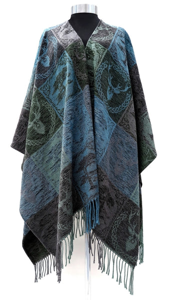 Celtic Stag & Pine Albion Ruana in a luxurious soft blend of Chenille and Pure New Wool. This Albion Ruana is a colour combination of Cypress Green, Slate Grey and Petrol Blue. Dimensions: One Size Fits All (150 x 200 cms Including Fringes) Composition: 67% Chenille/33% Pure New Wool |