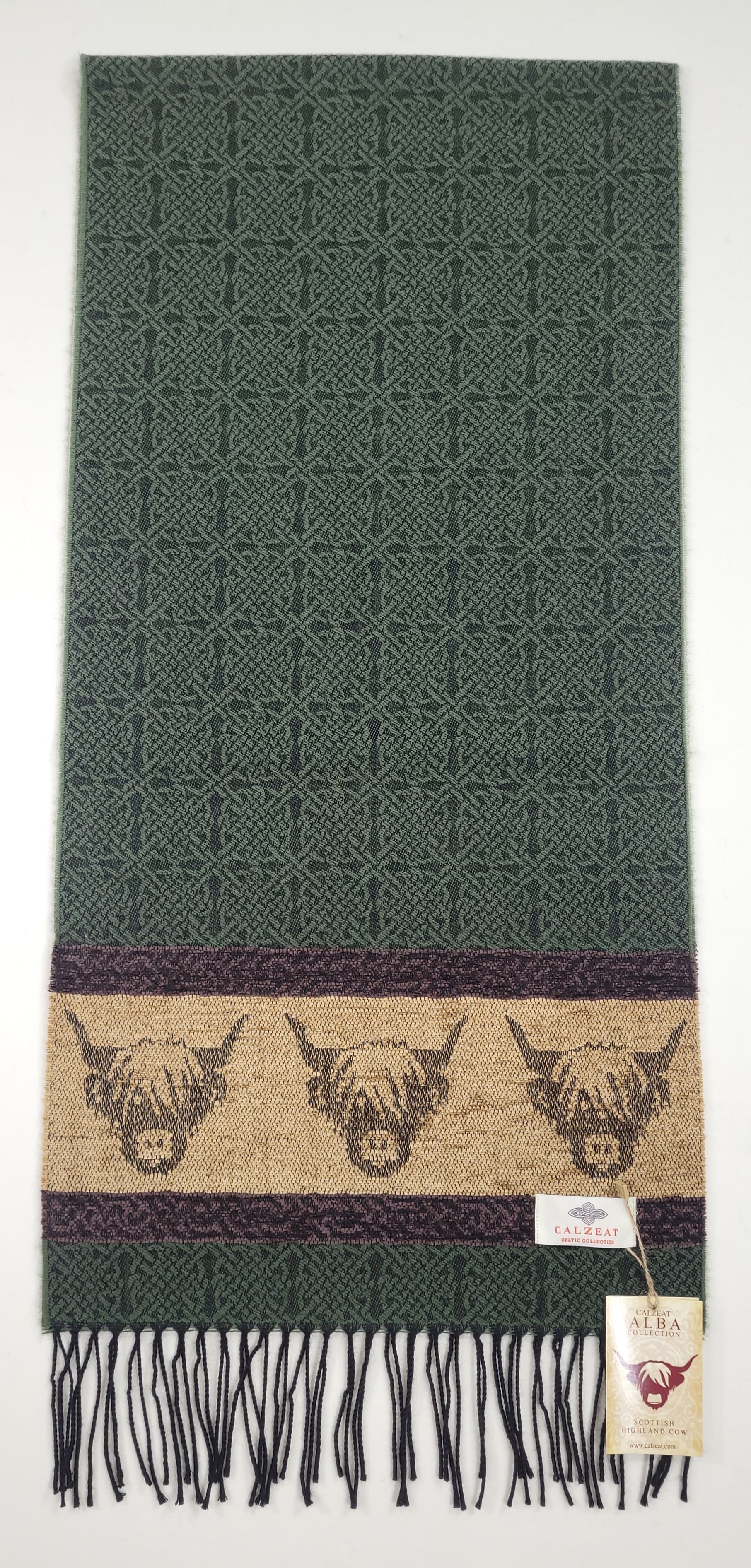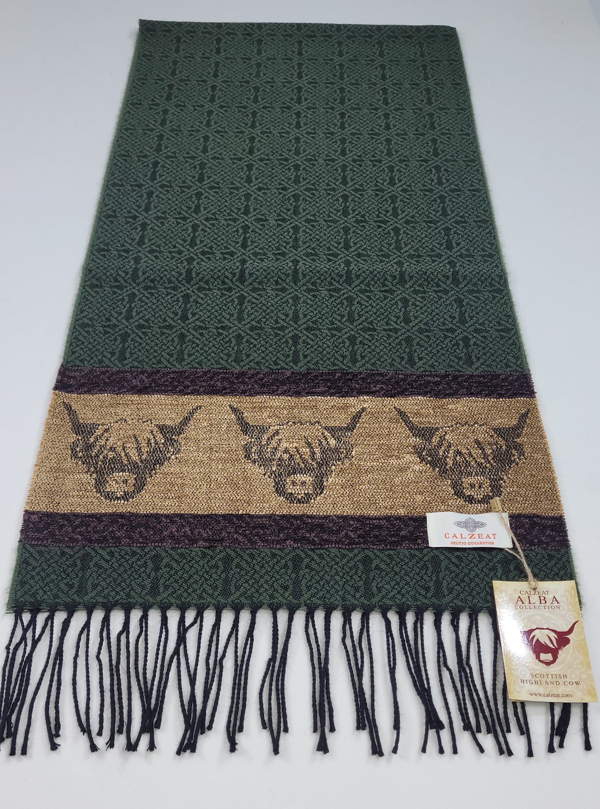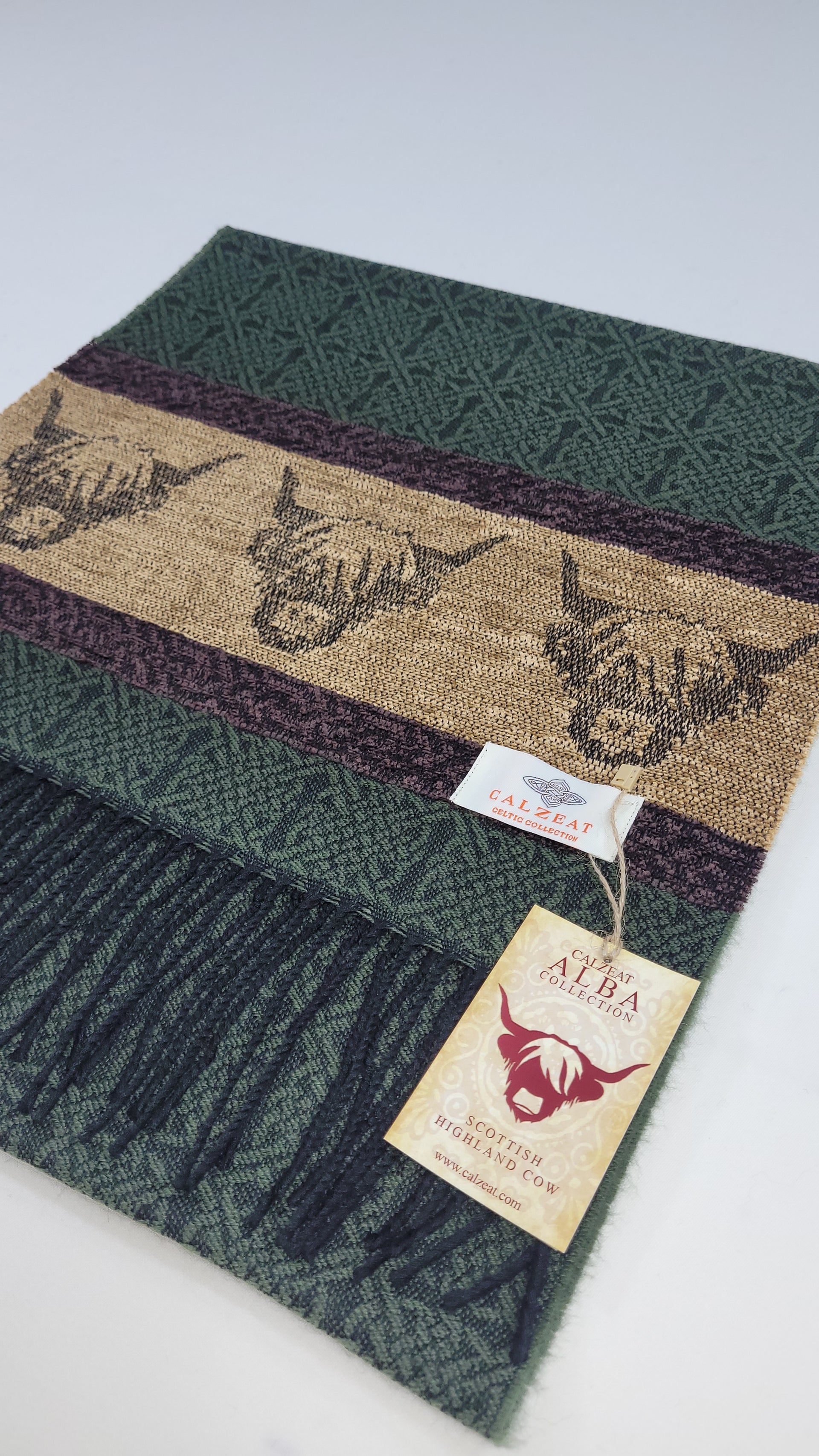 Celtic Alba Highland Cow Loden Jacquard Scarf