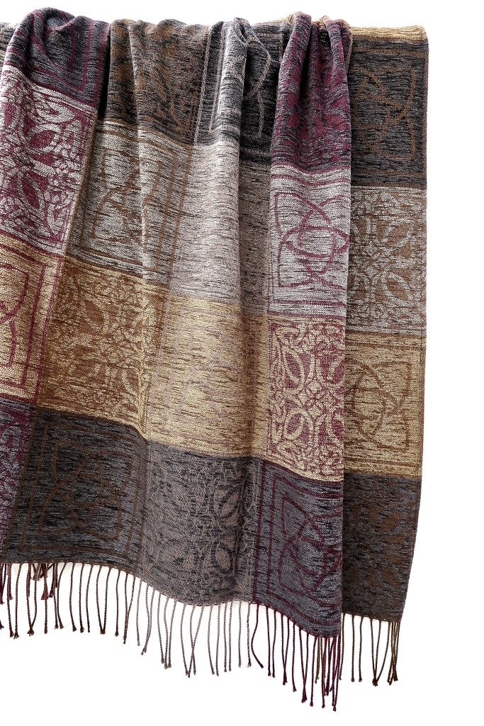 Celtic Brodgar Vintage Jacquard woven throw in a luxurious soft blend of Chenille and Pure New Wool. The Celtic Brodgar Vintage is a colour combination of Chocolate, Grey and Mink. Dimensions: 150 x 200 cms Including Fringes Composition: 67% Chenille/33% Pure New Wool An authentic Scottish product exclusively designed and woven by Calzeat of Scotland. |