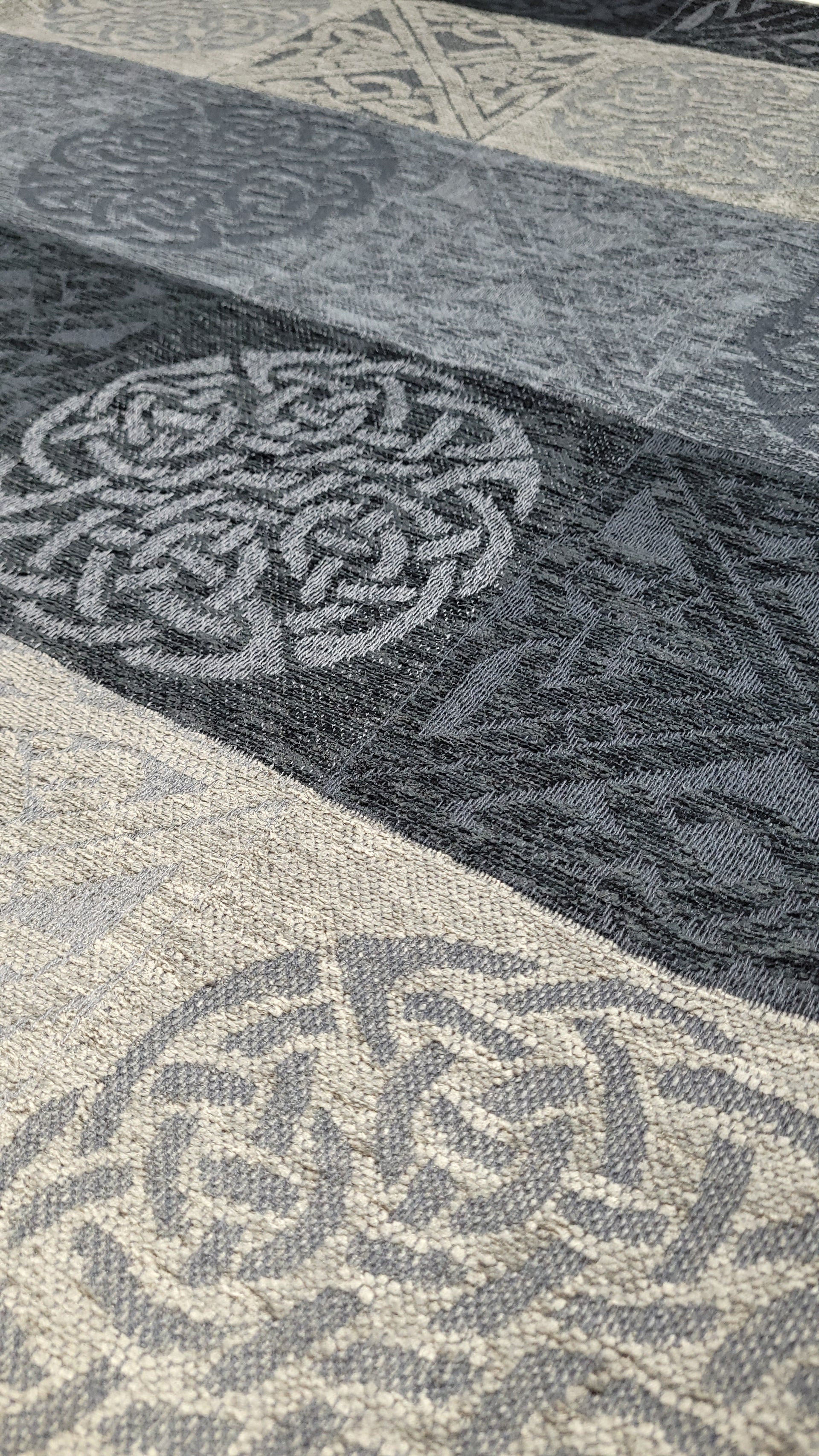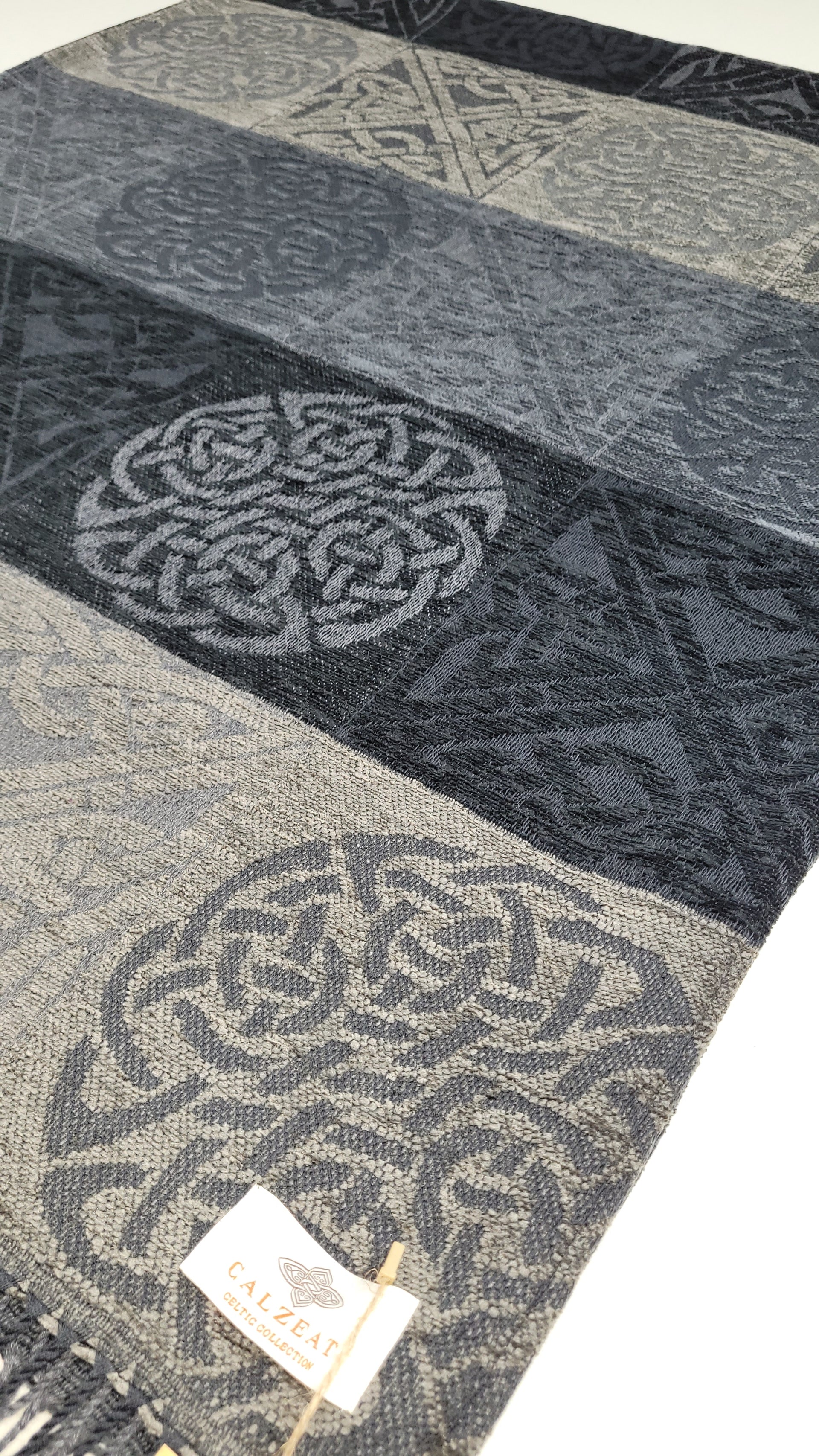 Celtic Knot Jacquard woven throw in a luxurious soft blend of Chenille and Pure New Wool. The Celtic Knot Ash is a Black / Grey. Dimensions: 150 x 200 cms Including Fringes Composition: 67% Chenille/33% Pure New Wool |