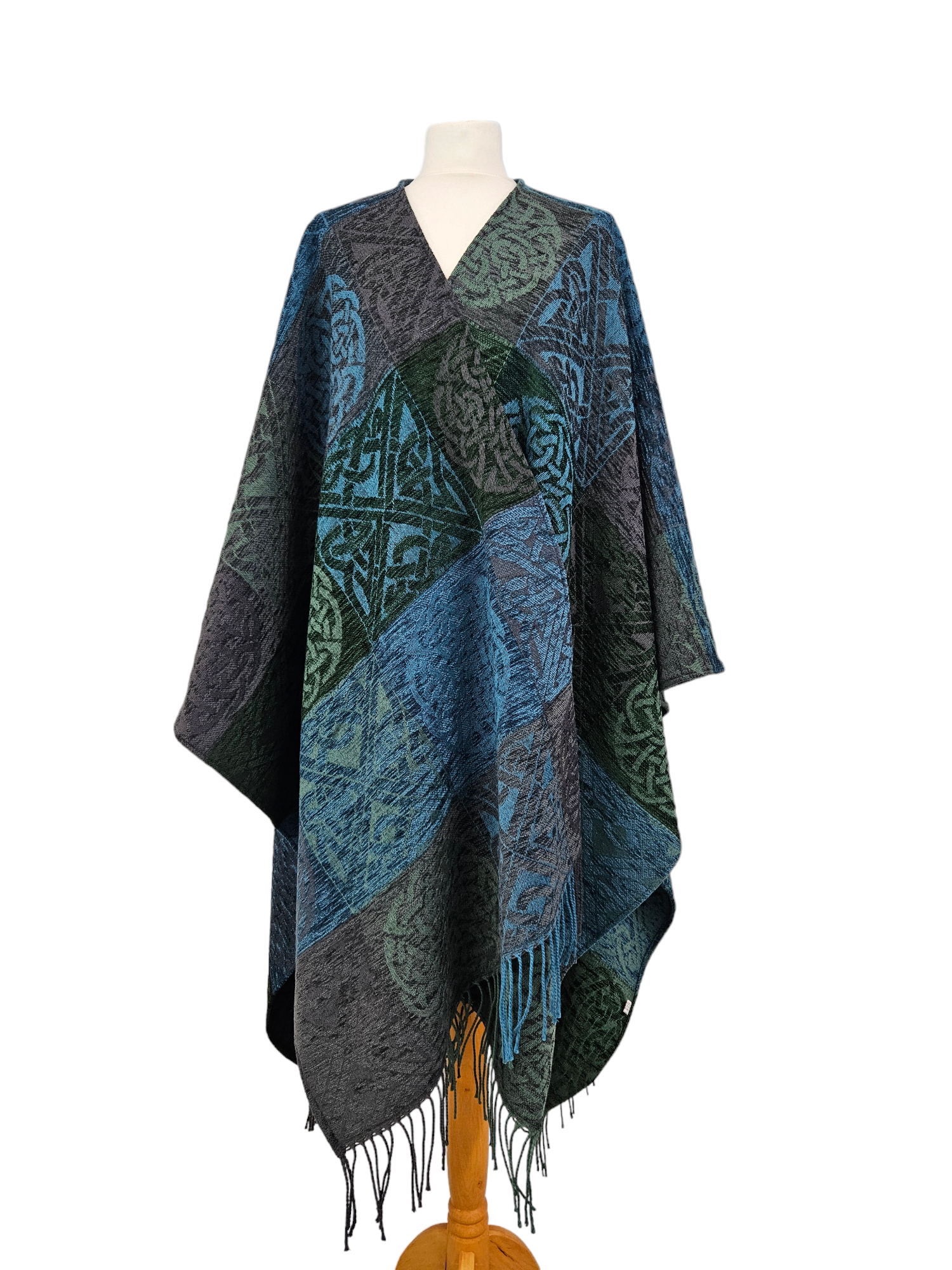 Celtic Knot Skye Ruana in a luxurious soft blend of Chenille and Pure New Wool. This Skye Ruana is a colour combination of Cypress Green, Slate Grey and Petrol Blue. Dimensions: One Size Fits All (150 x 200 cms Including Fringes) Composition: 67% Chenille/33% Pure New Wool |