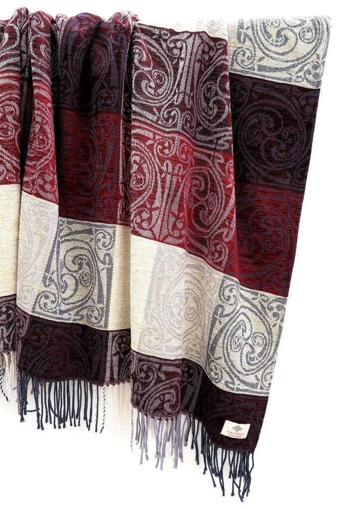 Celtic Spiral Jacquard woven throw in a luxurious soft blend of Chenille and Pure New Wool. Our Tobar design is a combination of Garnet, Mulberry and Eggshell. Dimensions: 150 x 200 cms Including Fringes Composition: 67% Chenille/33% Pure New Wool An authentic Scottish product exclusively designed and woven by Calzeat of Scotland. |
