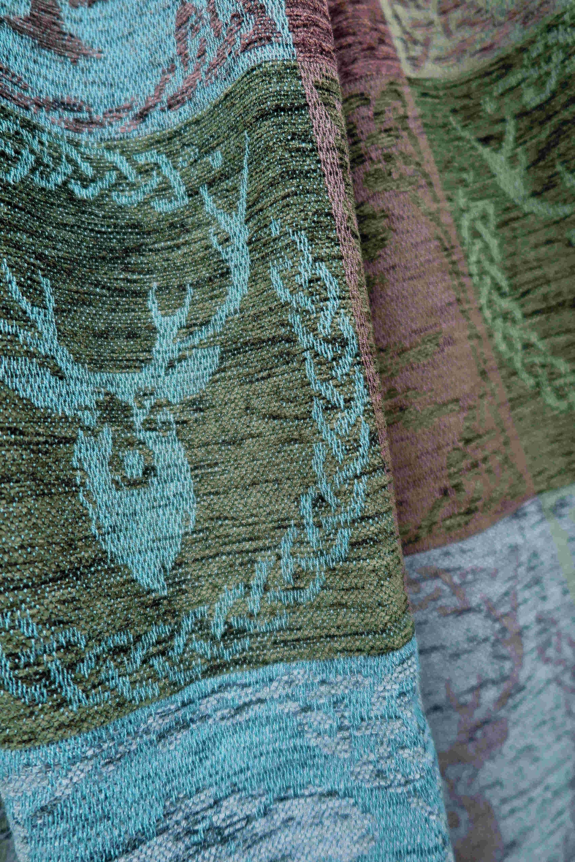 The Celtic Stag & Pine Albion Jacquard woven throw is a luxurious soft blend of Chenille and Pure New Wool in a beautiful combination of Cypress Green, Slate Grey and Petrol Blue. Dimensions: 150 x 200 cms Including Fringes Composition: 67% Chenille/33% Pure New Wool An authentic Scottish product exclusively designed and woven by Calzeat of Scotland. |