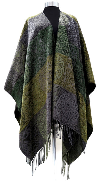 Celtic Knot Loudoun Ruana in a luxurious soft blend of Chenille and Pure New Wool. The Loudoun is a colour combination of Olive, Nimbus and Cypress. Dimensions: One Size Fits All (150 x 200 cms Including Fringes) Composition: 67% Chenille/33% Pure New Wool |