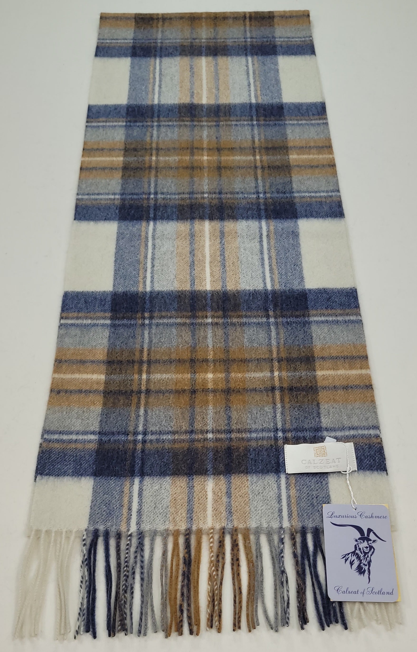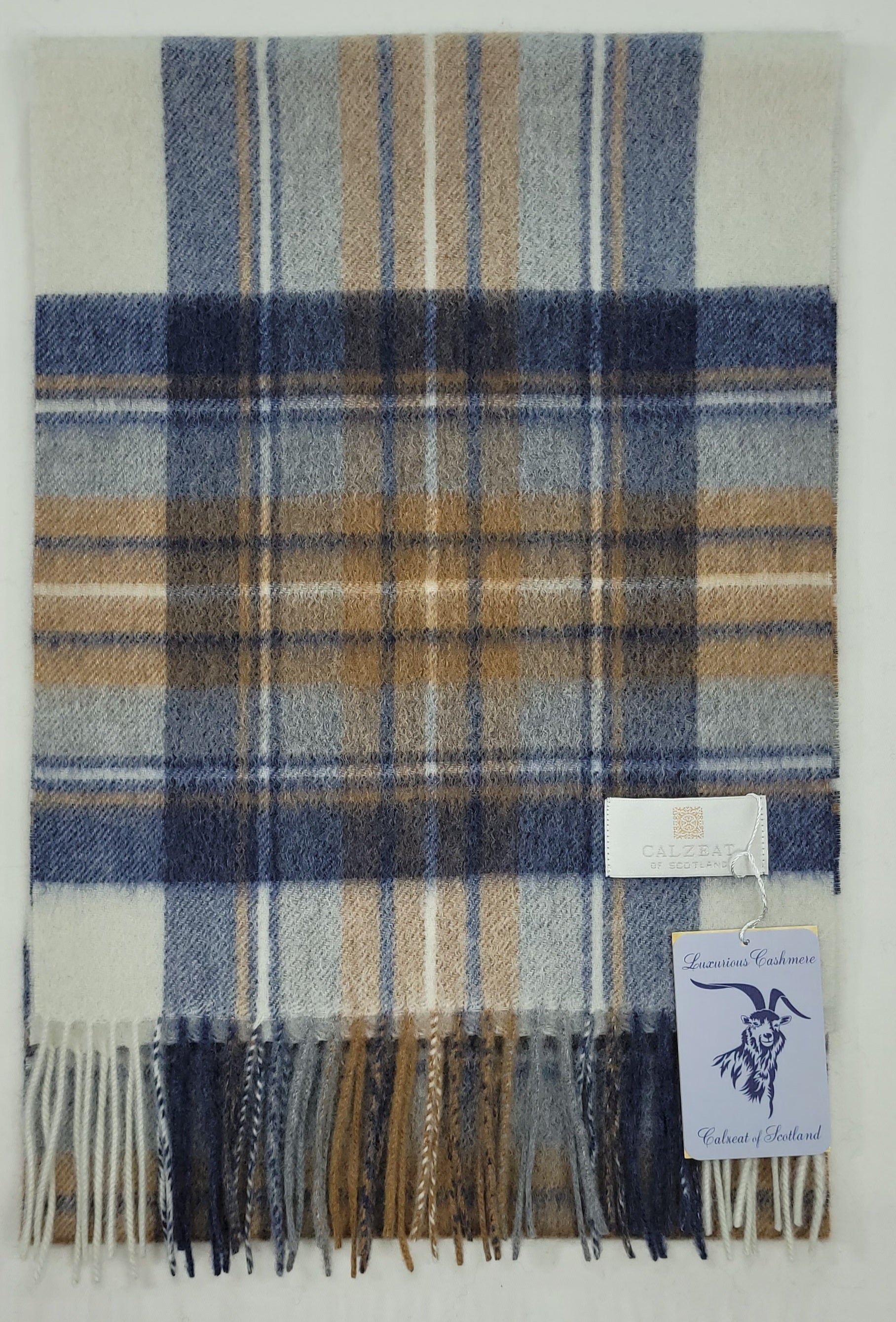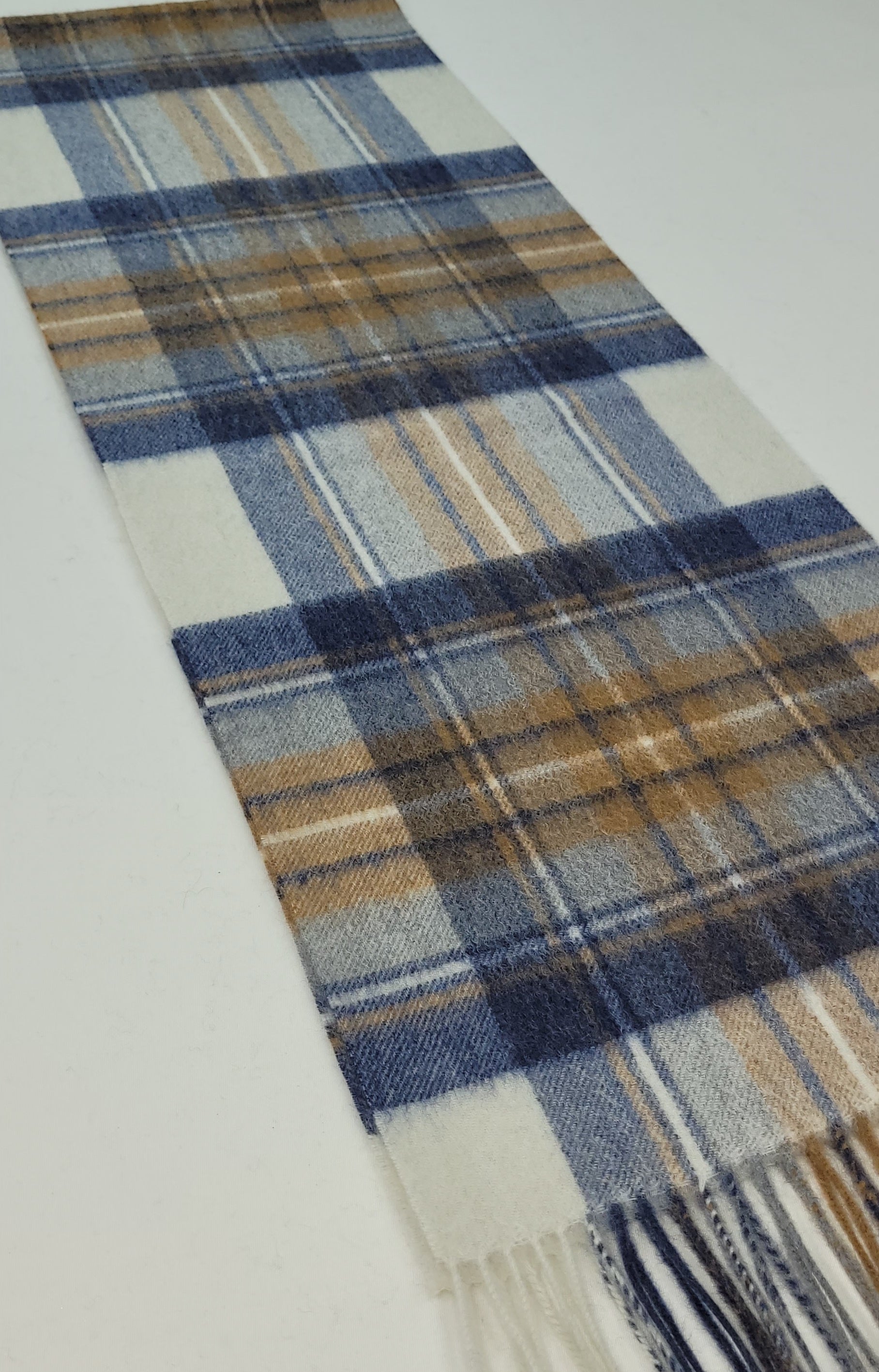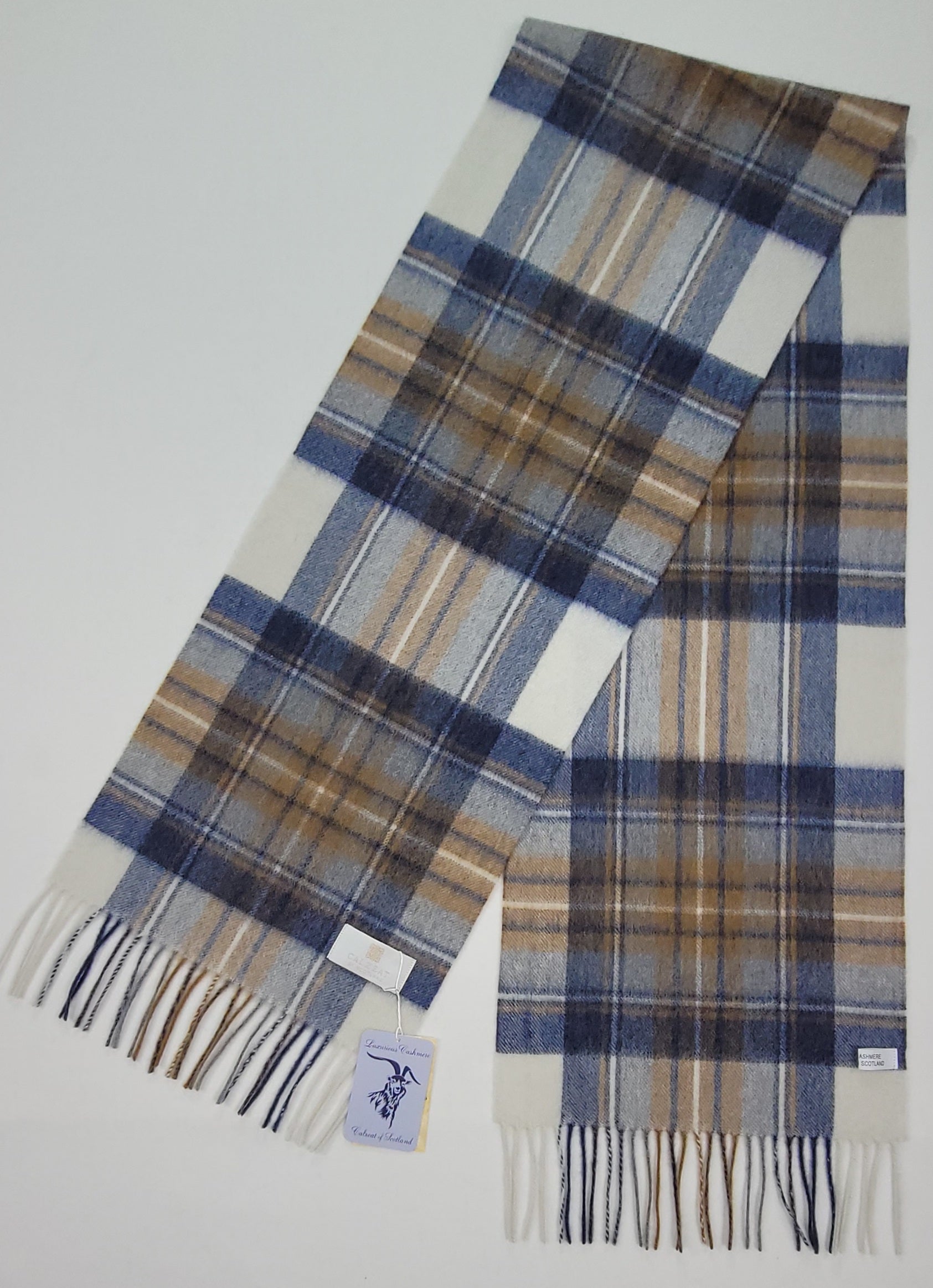Pure Cashmere Scarf - Blue Beige Check