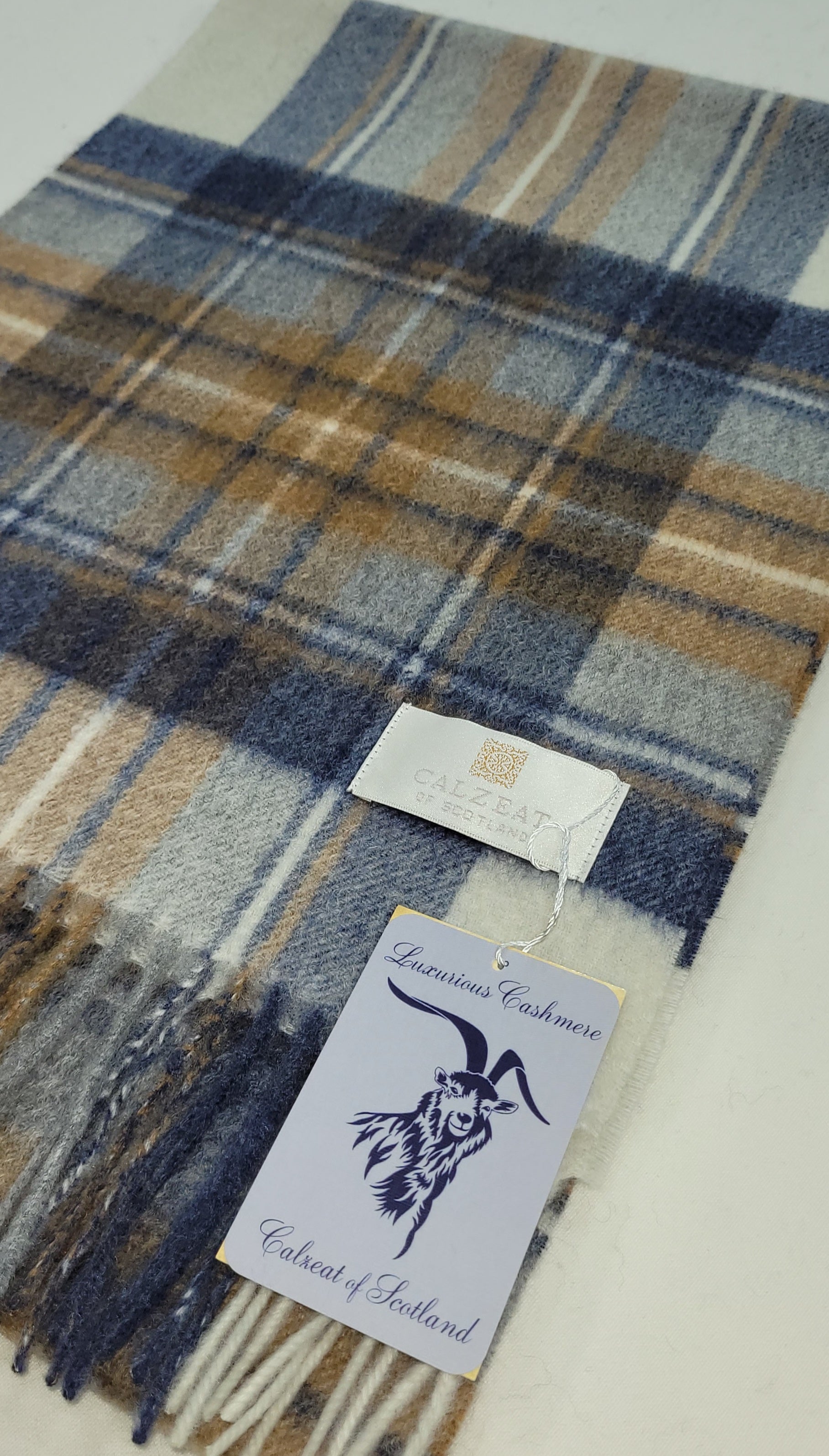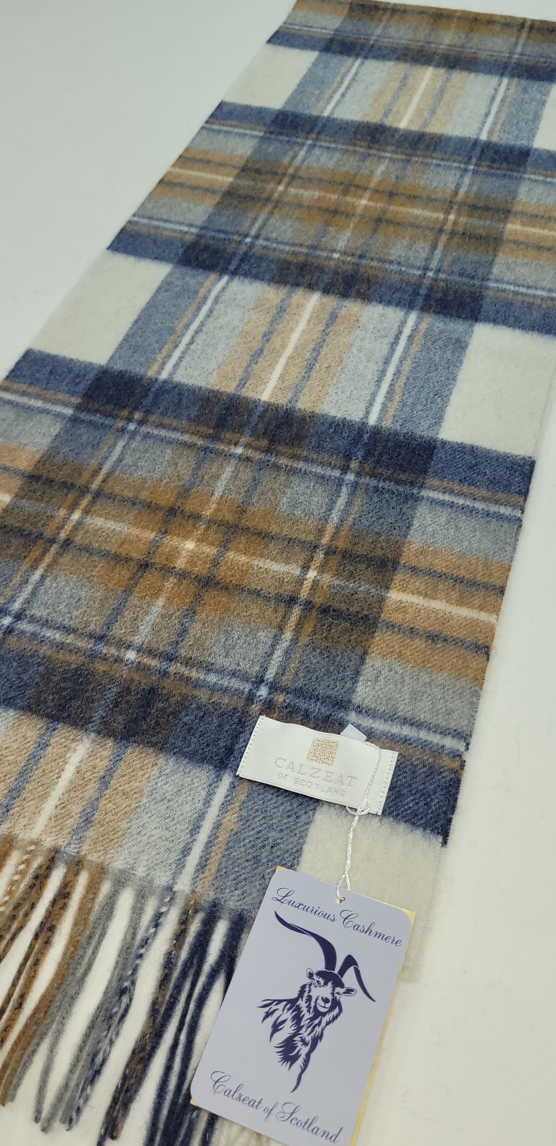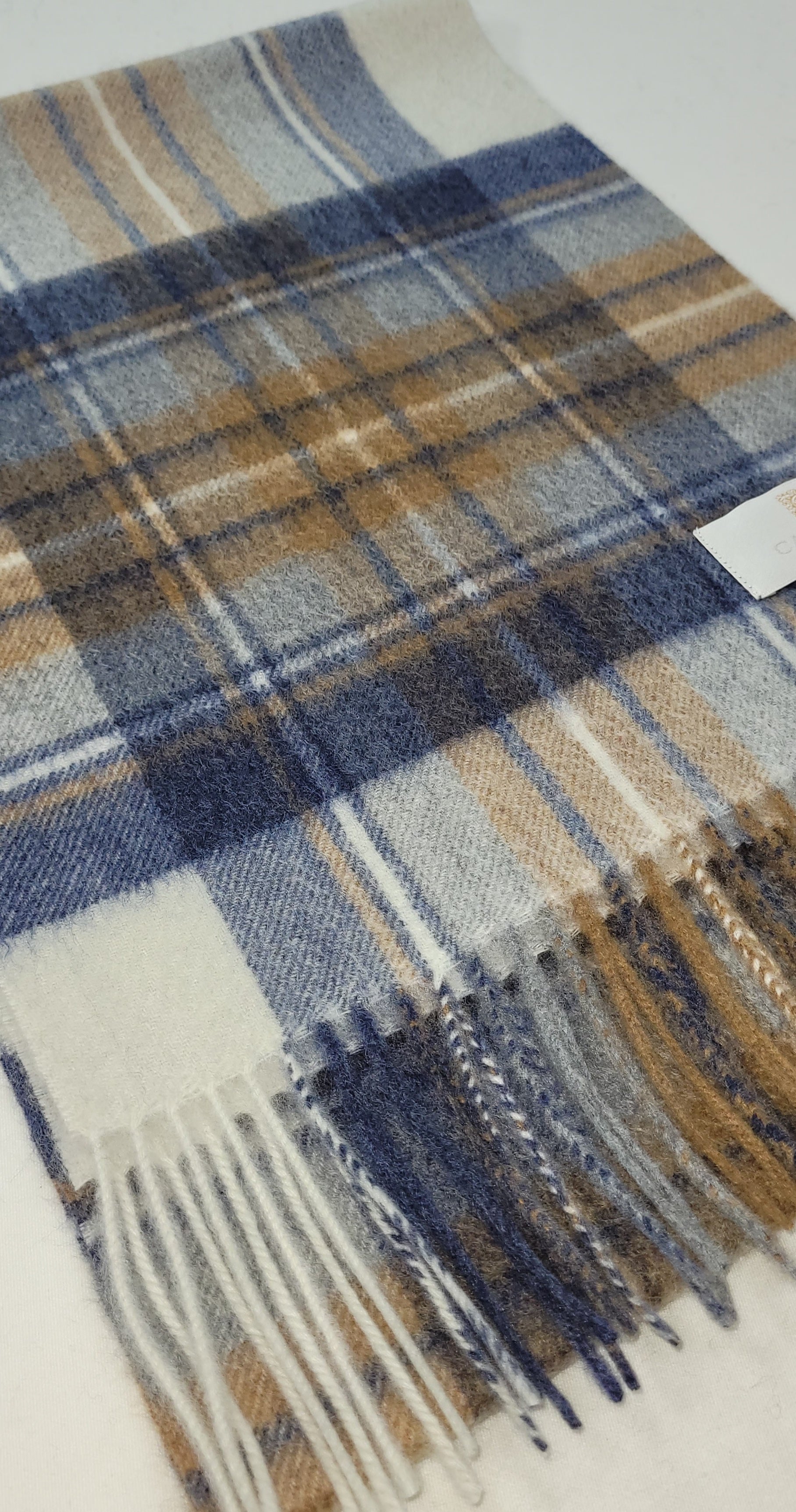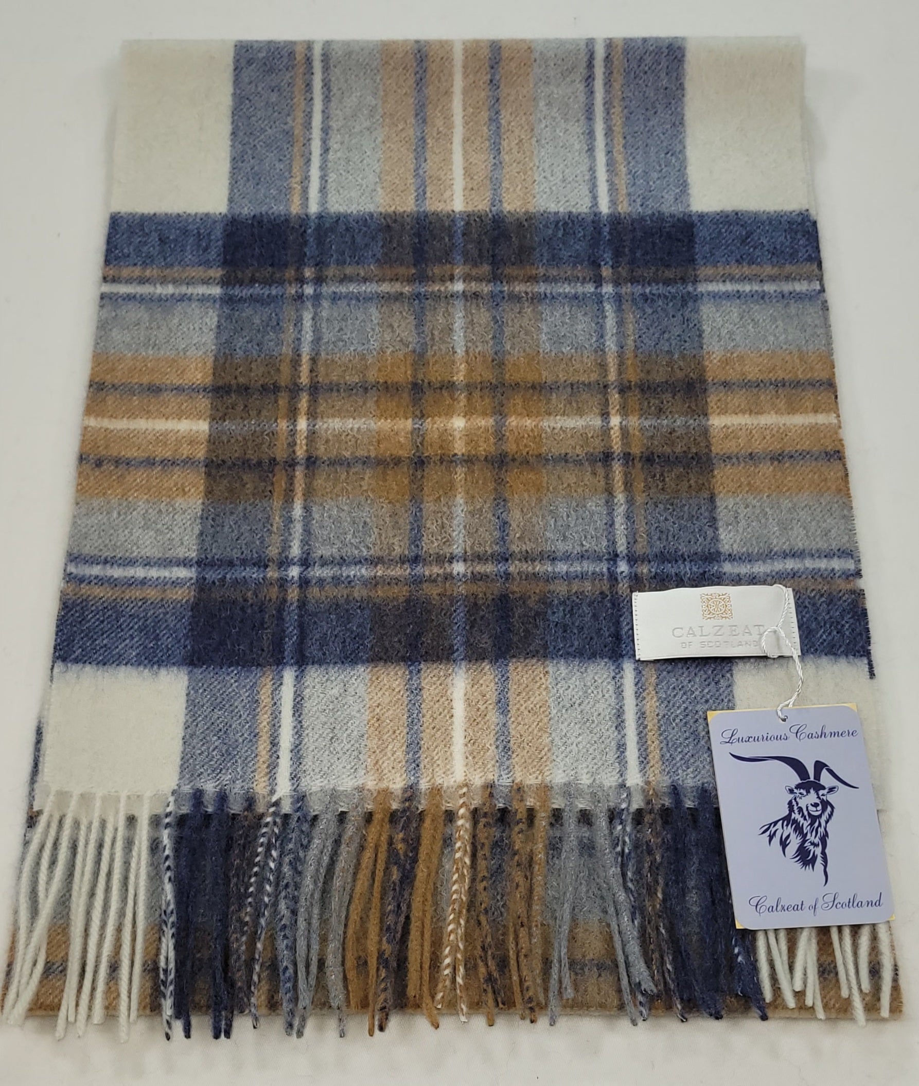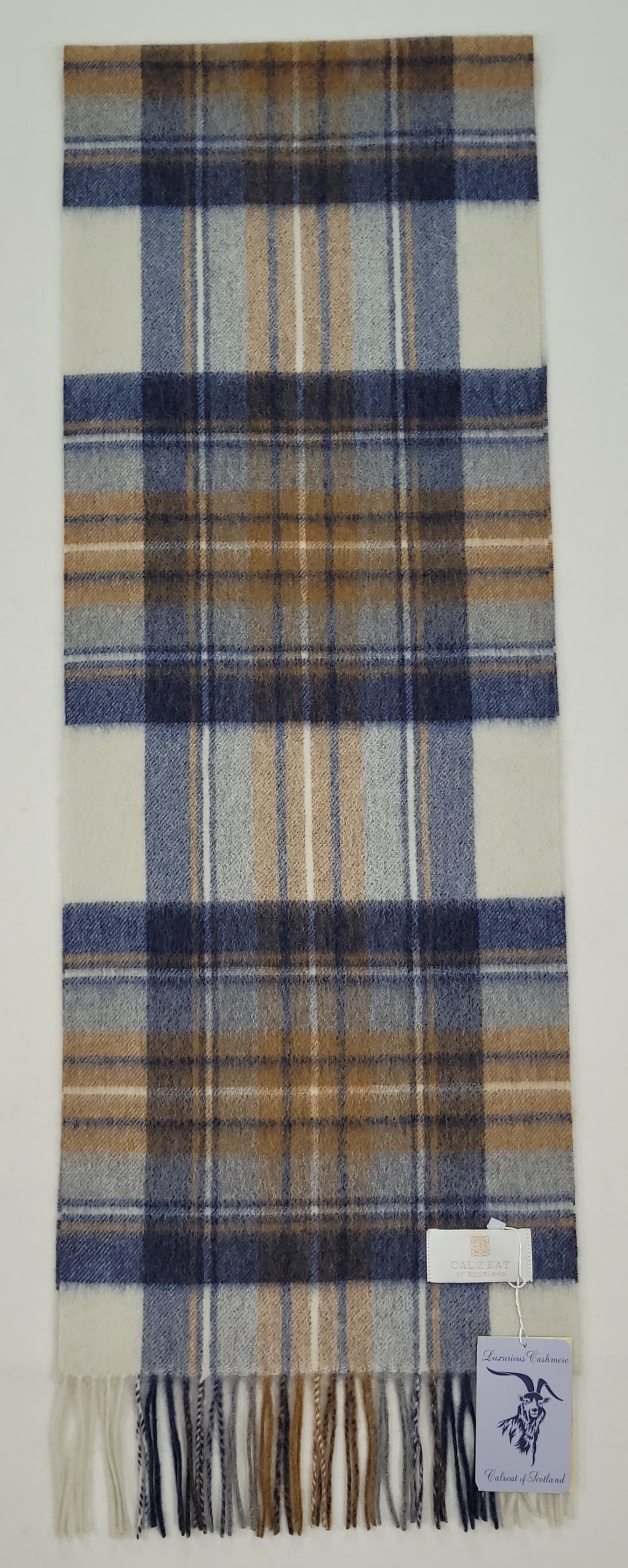 Pure Cashmere Scarf - Blue Beige Check