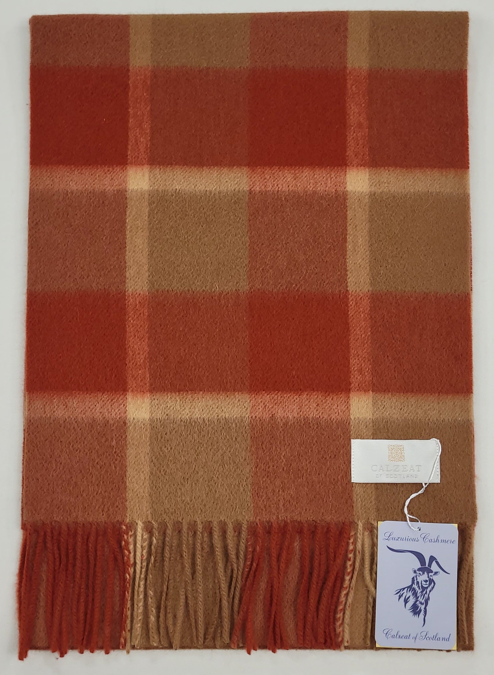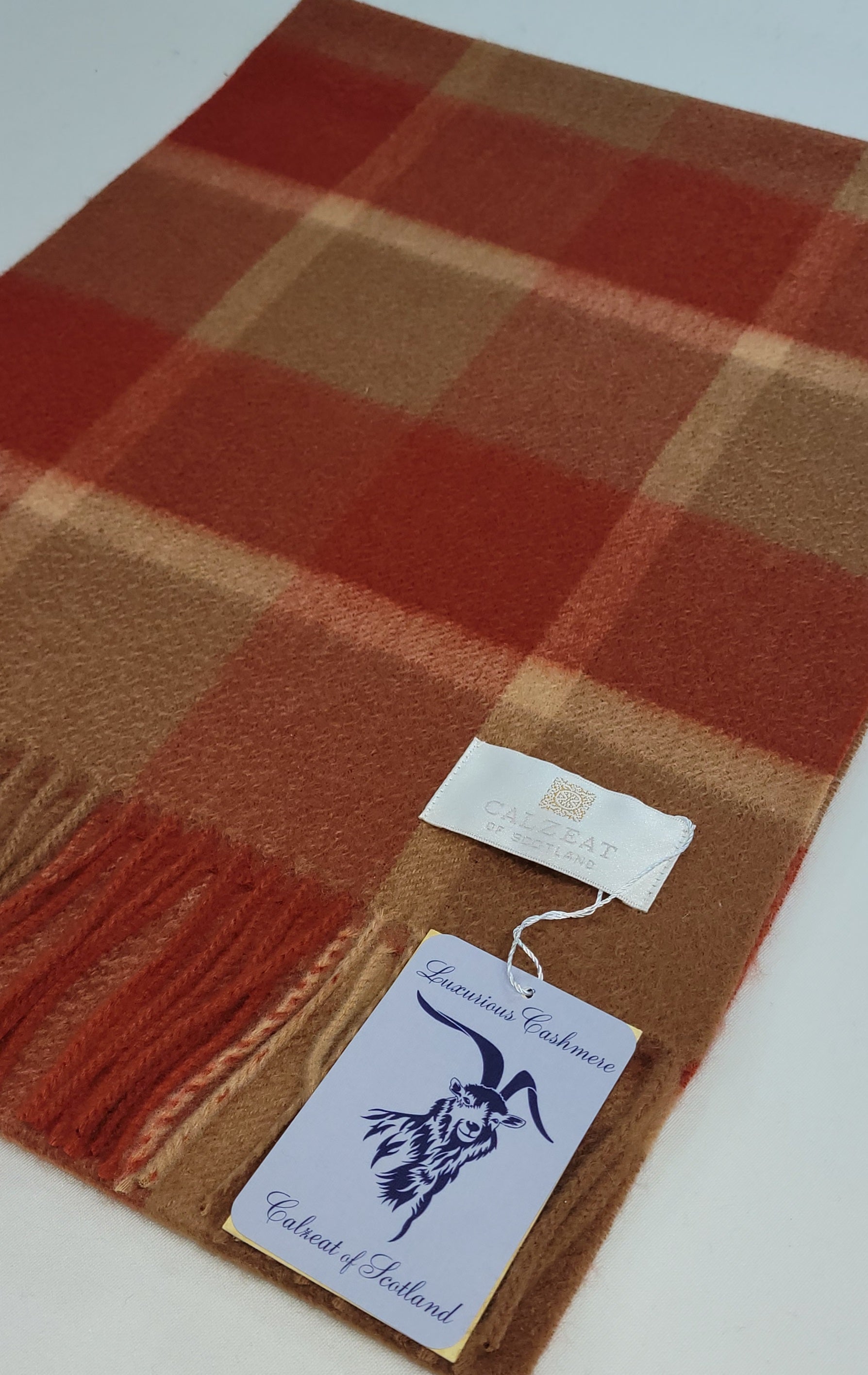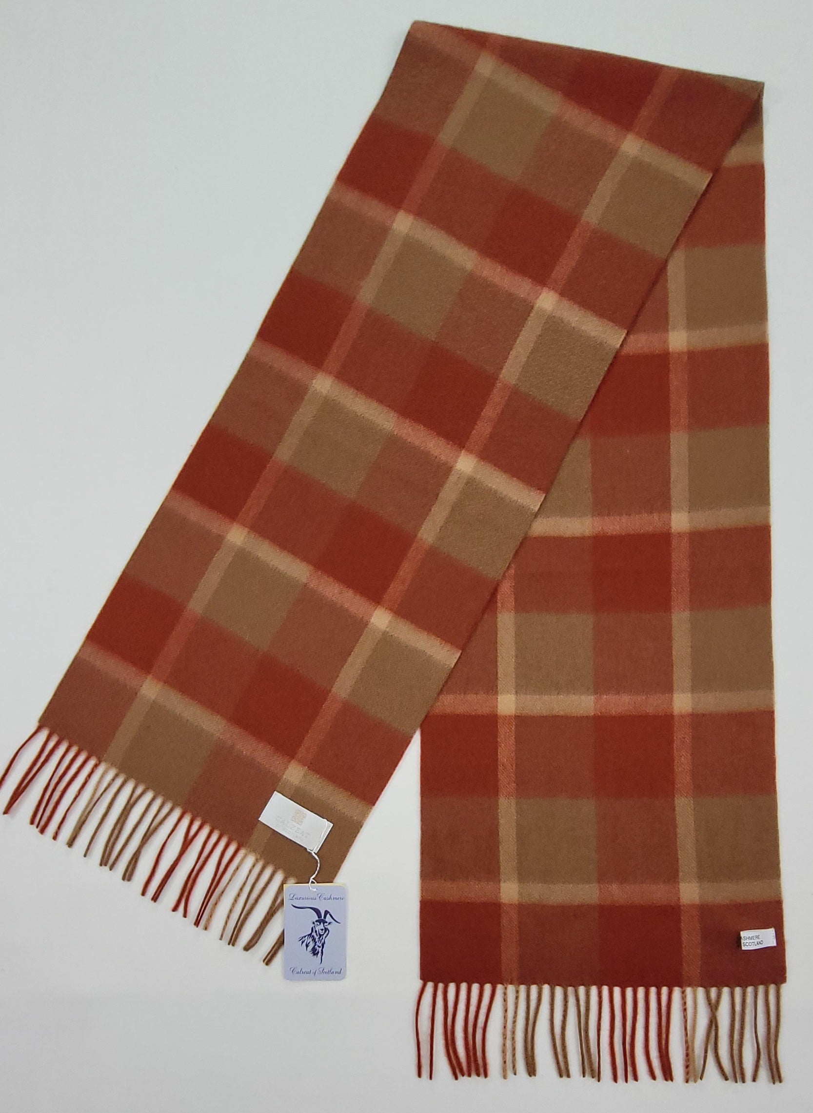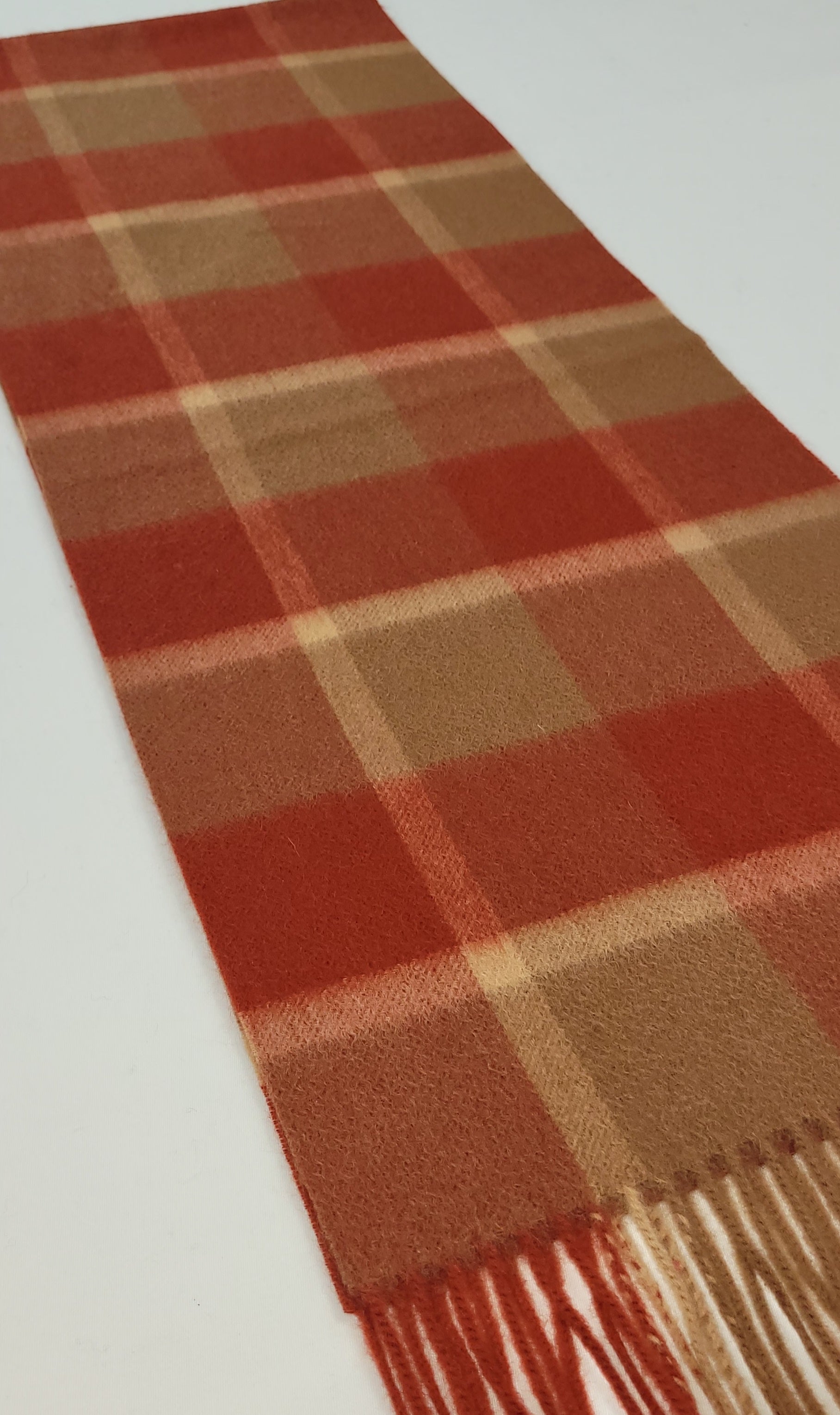 This pure cashmere scarf in shades of Rust , Bronze and Beige is a classic and timeless design perfect for both men & women alike.