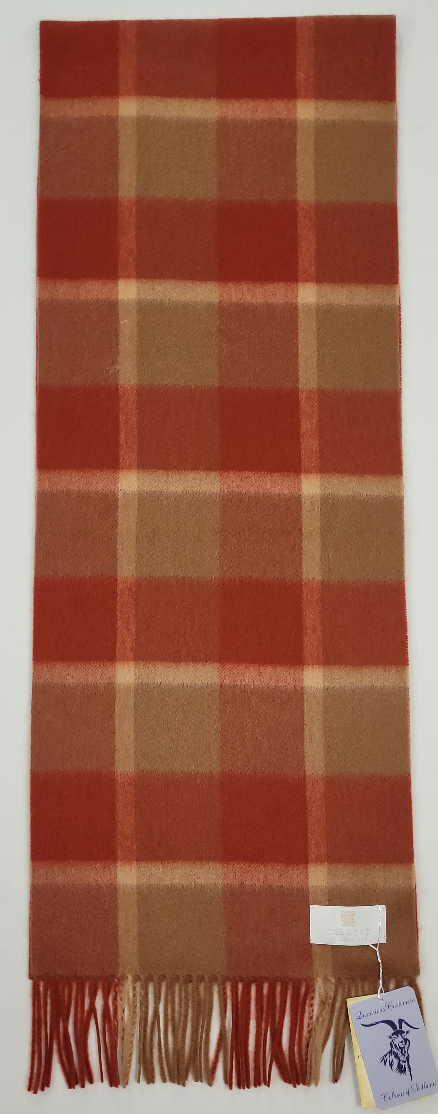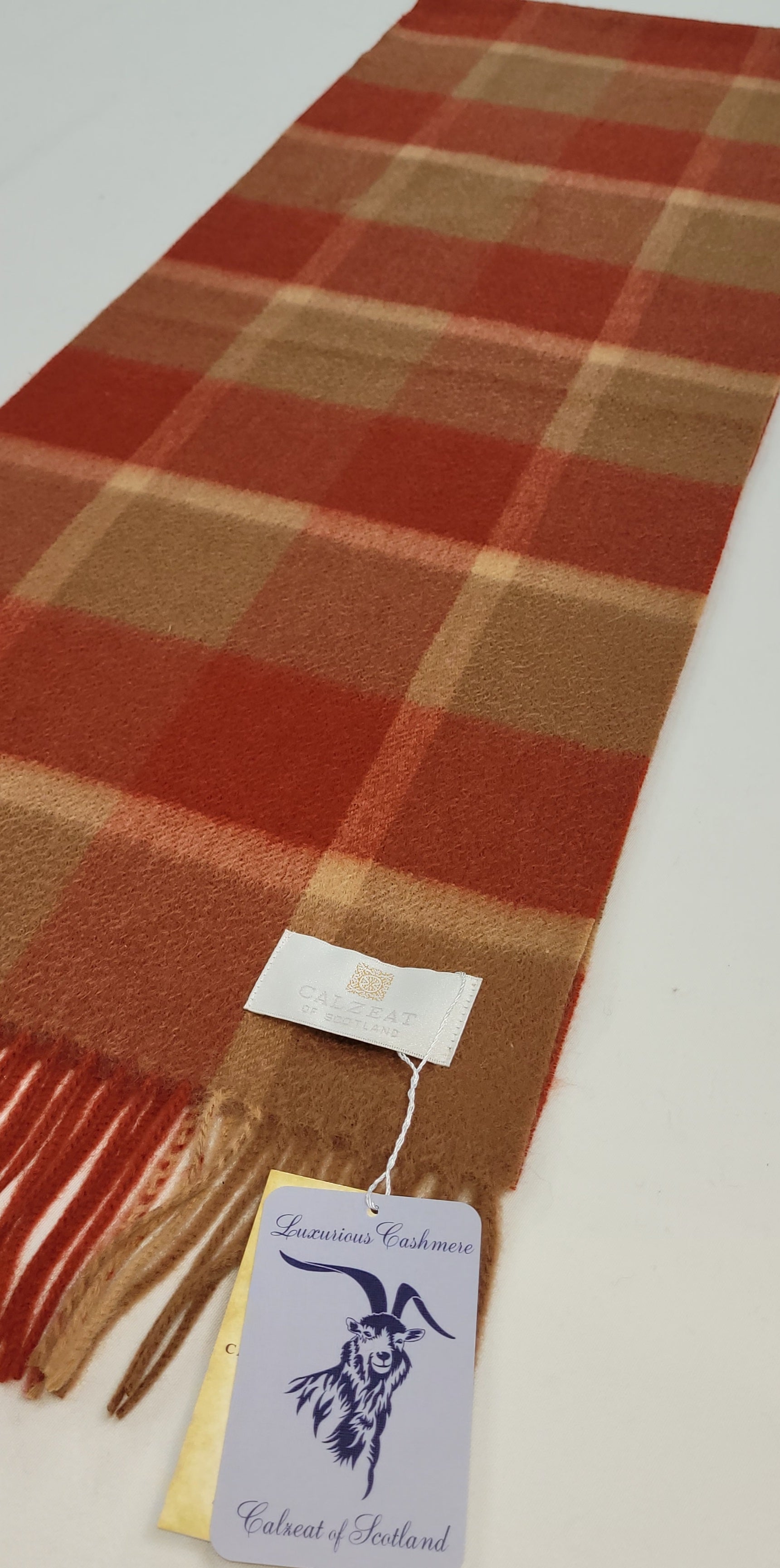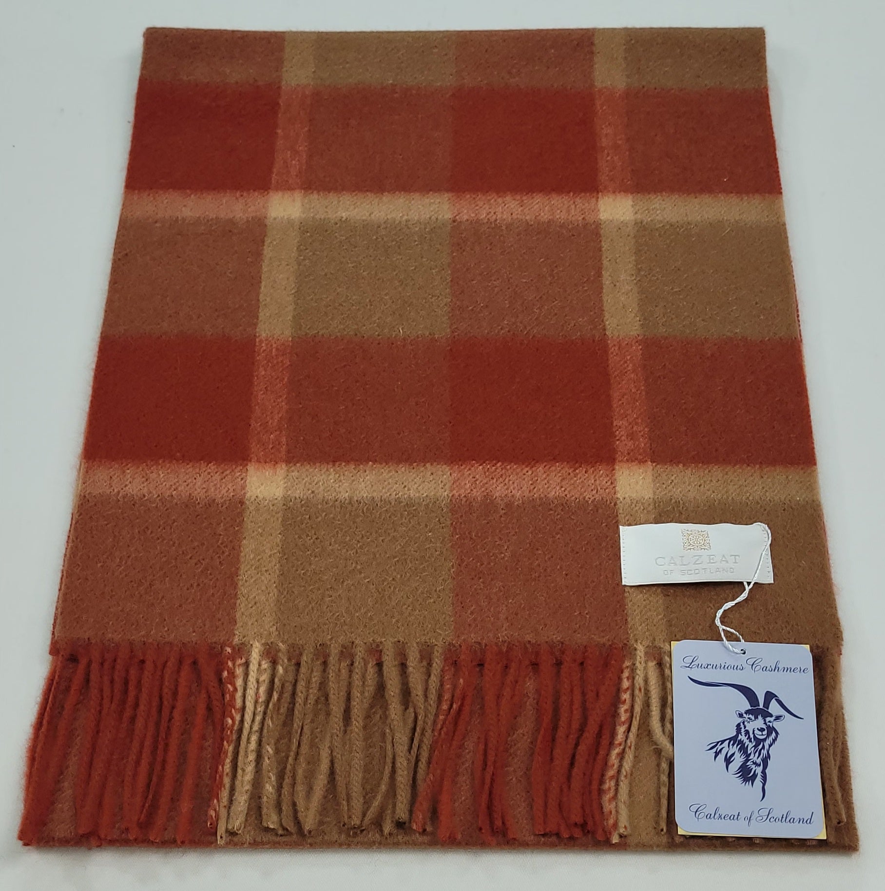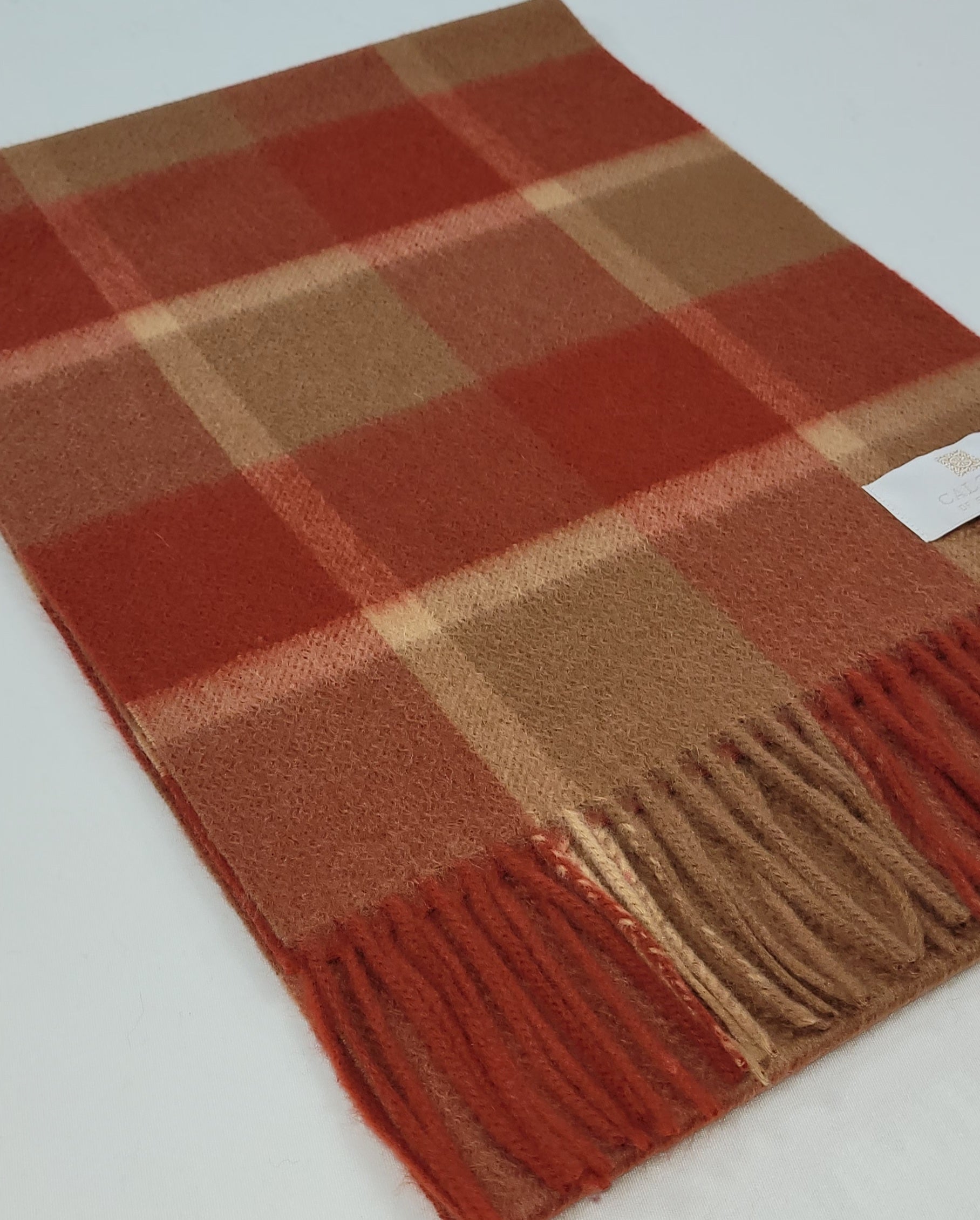 This pure cashmere scarf in shades of Rust , Bronze and Beige is a classic and timeless design perfect for both men & women alike.