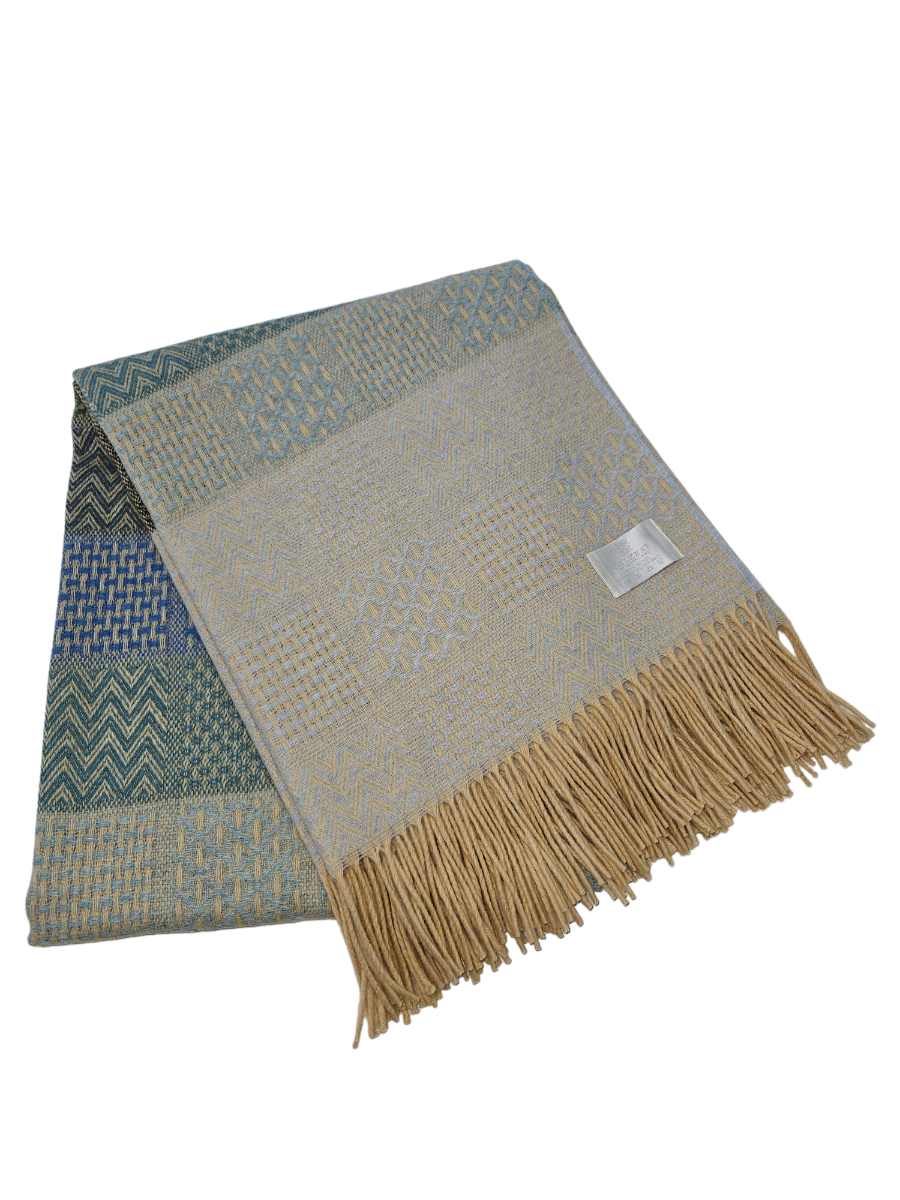 Geometric Throw (Olive Stripe) Composition: 100% Wool Size: 136 cms x 187 cms Geometric Throw Made by Calzeat of Scotland |