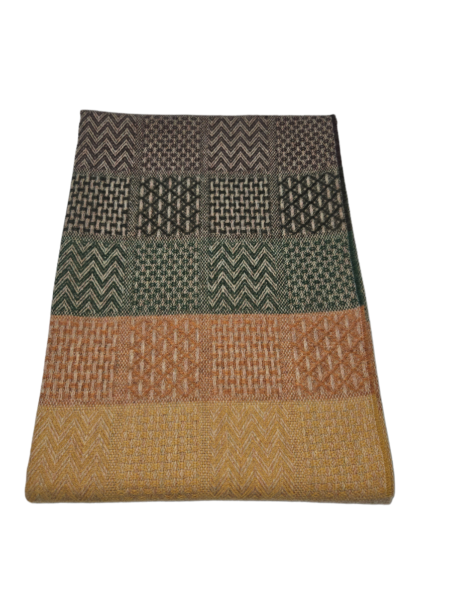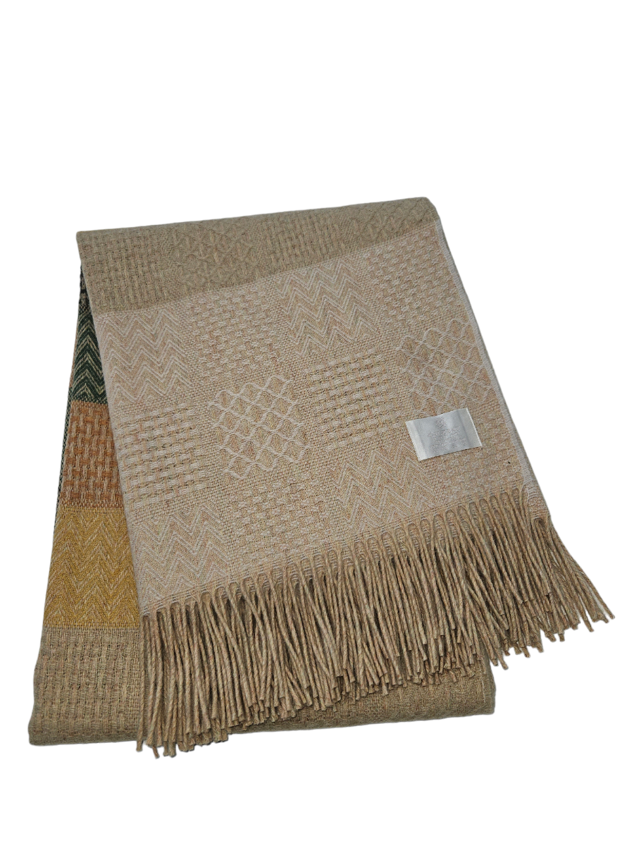 Geometric Throw (Beige-Stripe) Composition: 100% Wool Size: 136 cms x 187 cms Geometric Throw Made By Calzeat of Scotland |
