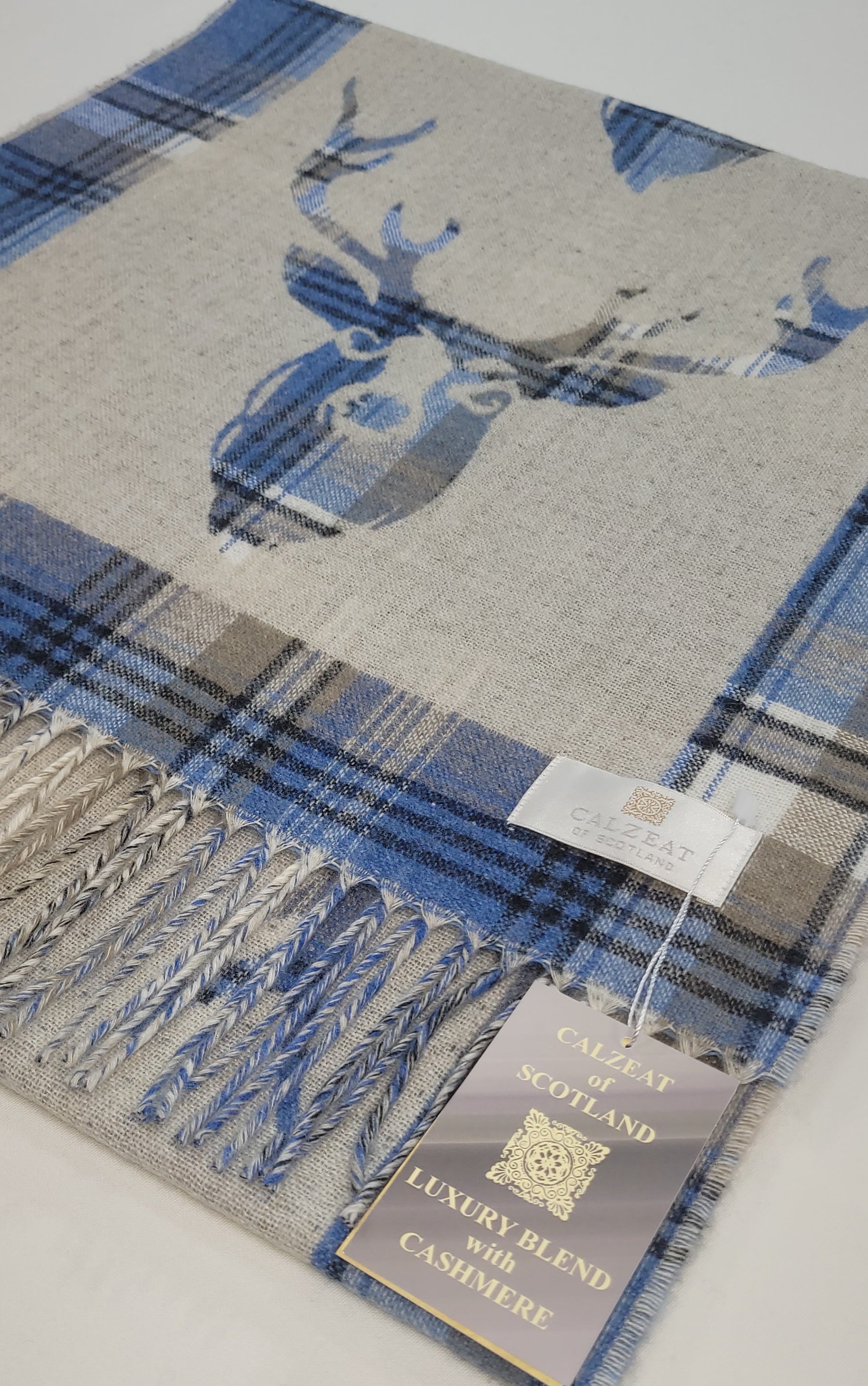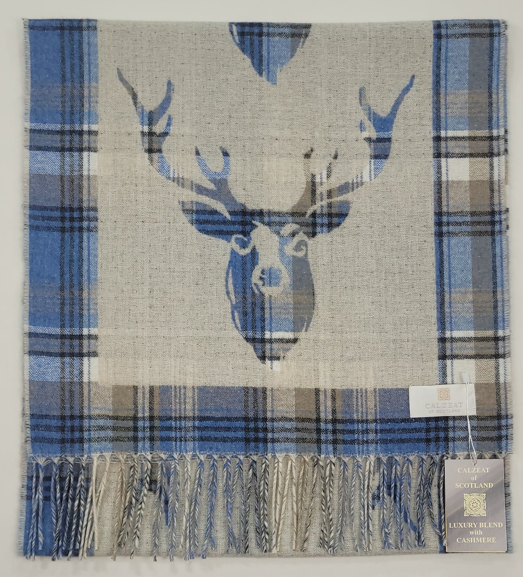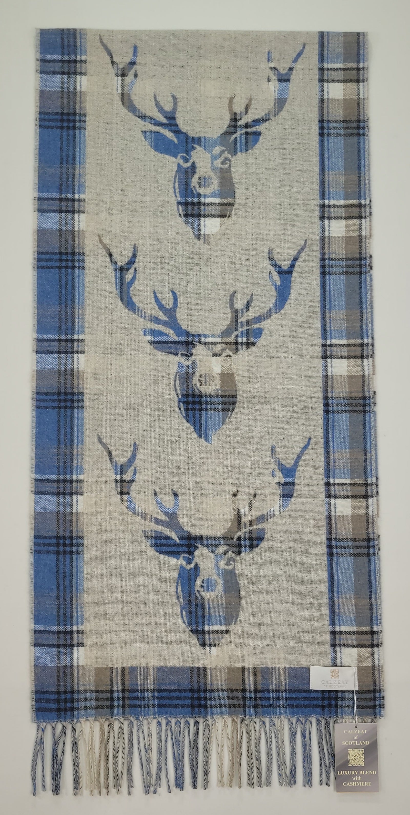 Our Blue Stag Wrap is lovely and soft to the touch. It features an intricate double cloth construction that creates a Scottish check in the motif of a stag. This truly is a beautiful & unique Scottish product. Dimensions: 47 x 200 cm Including Fringes An authentic Scottish product exclusively designed and woven by Calzeat of Scotland. |