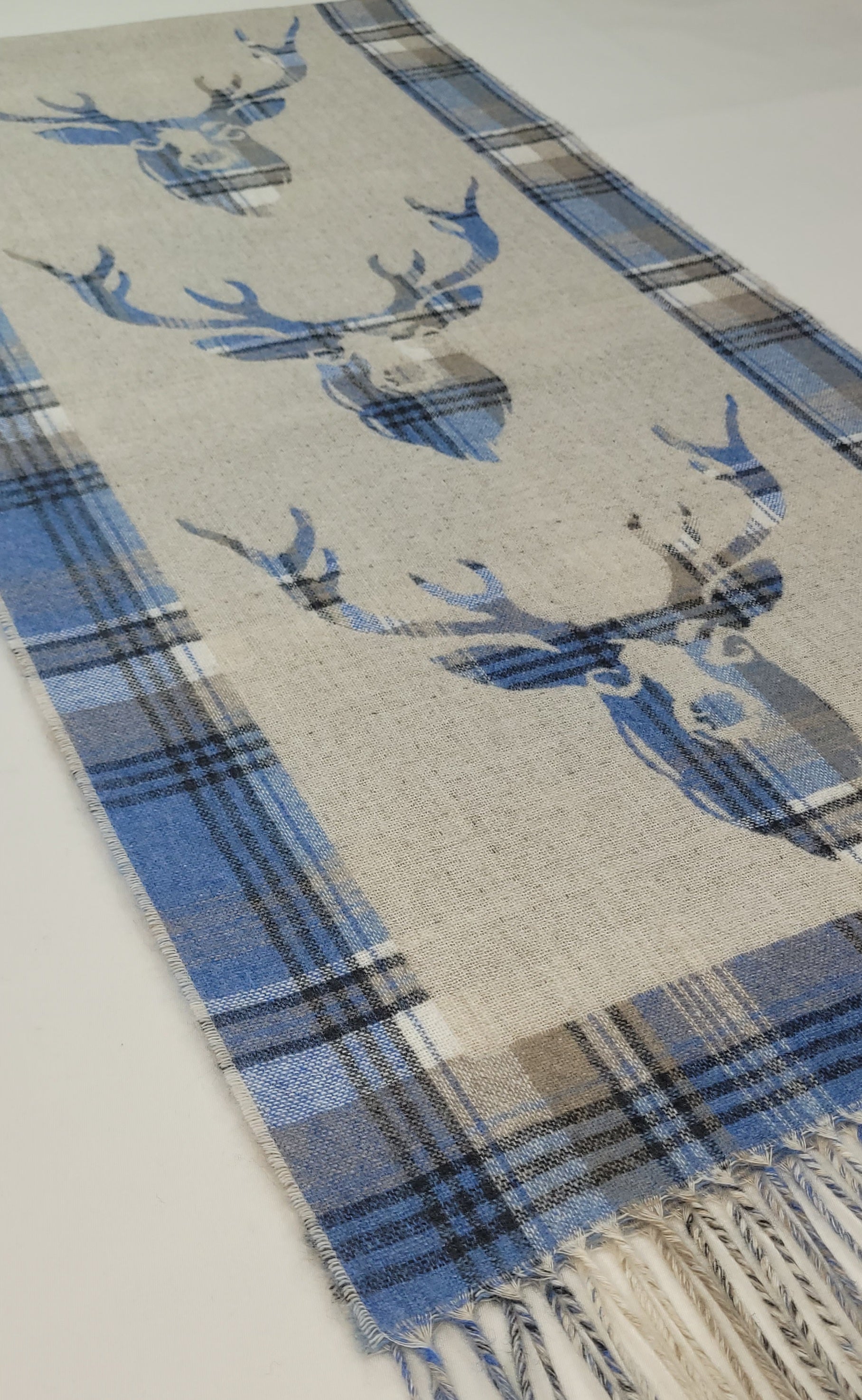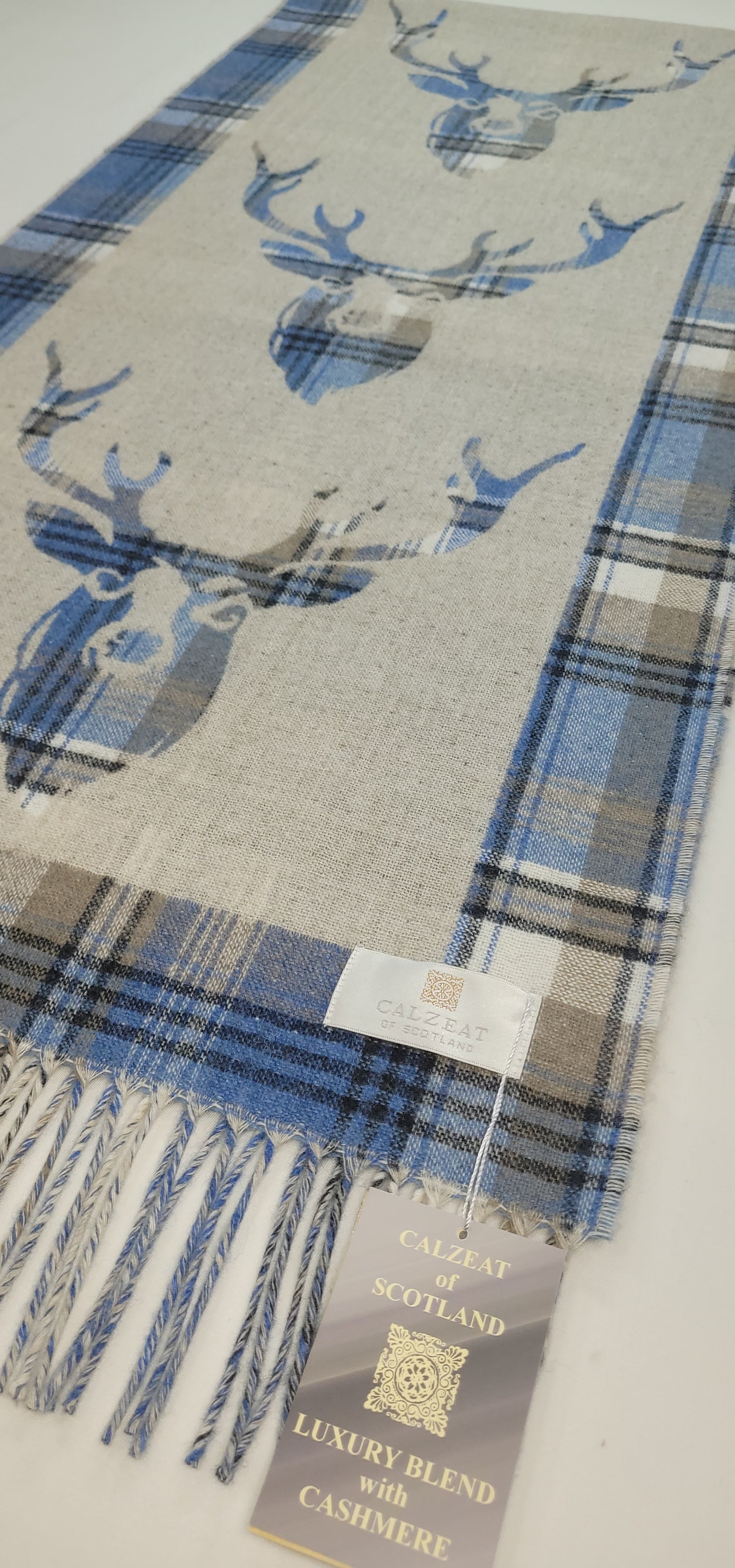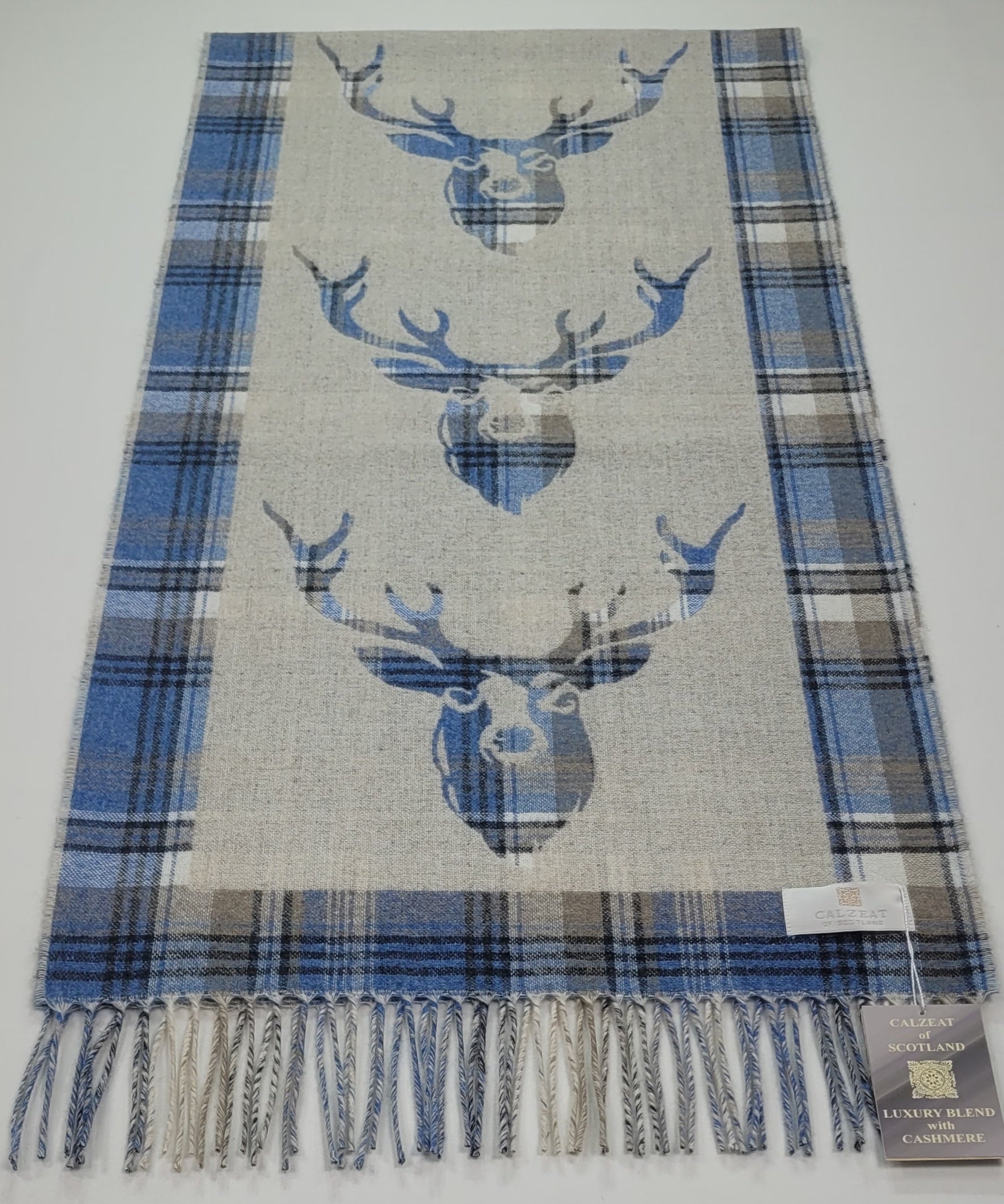 Our Blue Stag Wrap is lovely and soft to the touch. It features an intricate double cloth construction that creates a Scottish check in the motif of a stag. This truly is a beautiful & unique Scottish product. Dimensions: 47 x 200 cm Including Fringes An authentic Scottish product exclusively designed and woven by Calzeat of Scotland. |