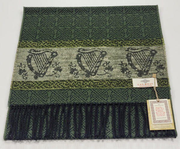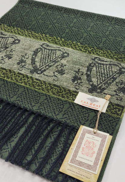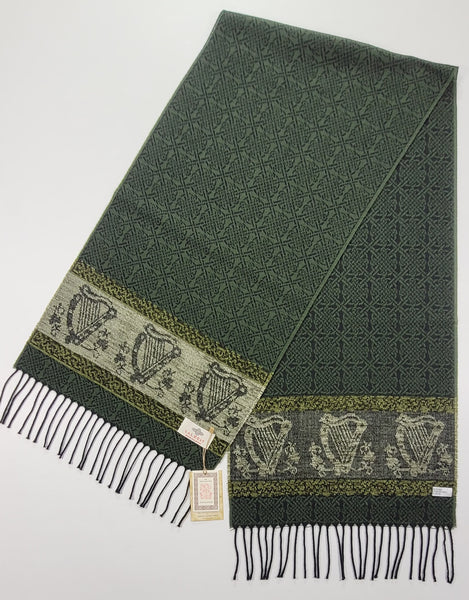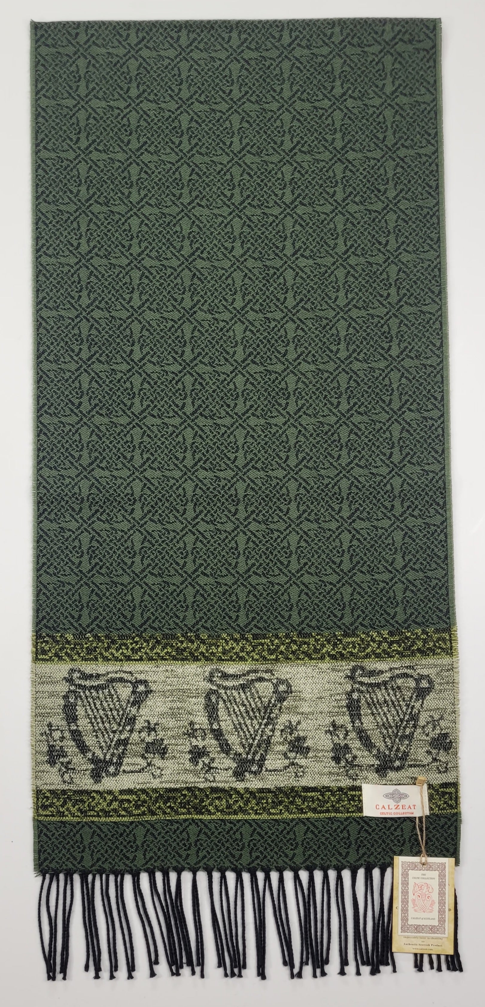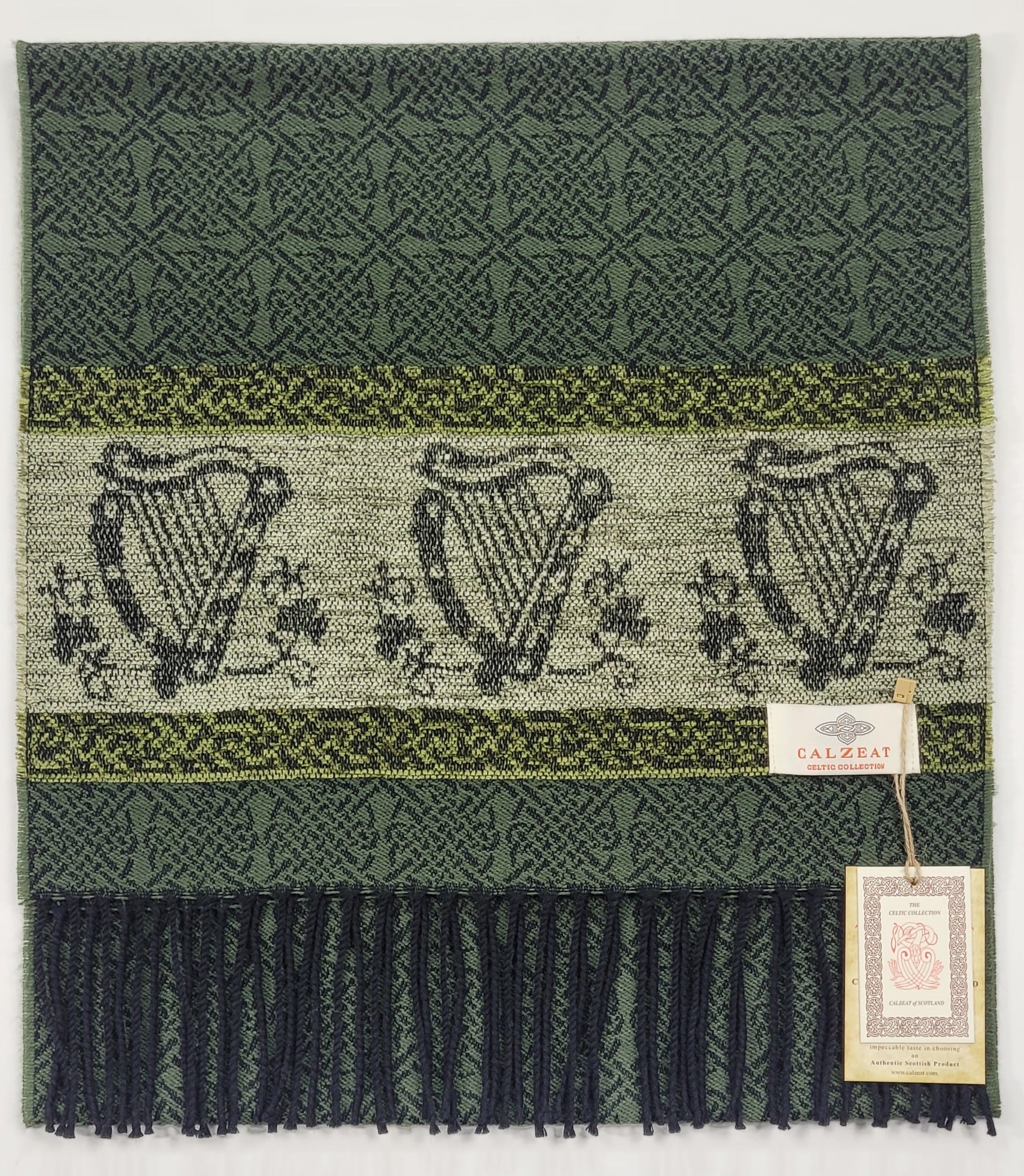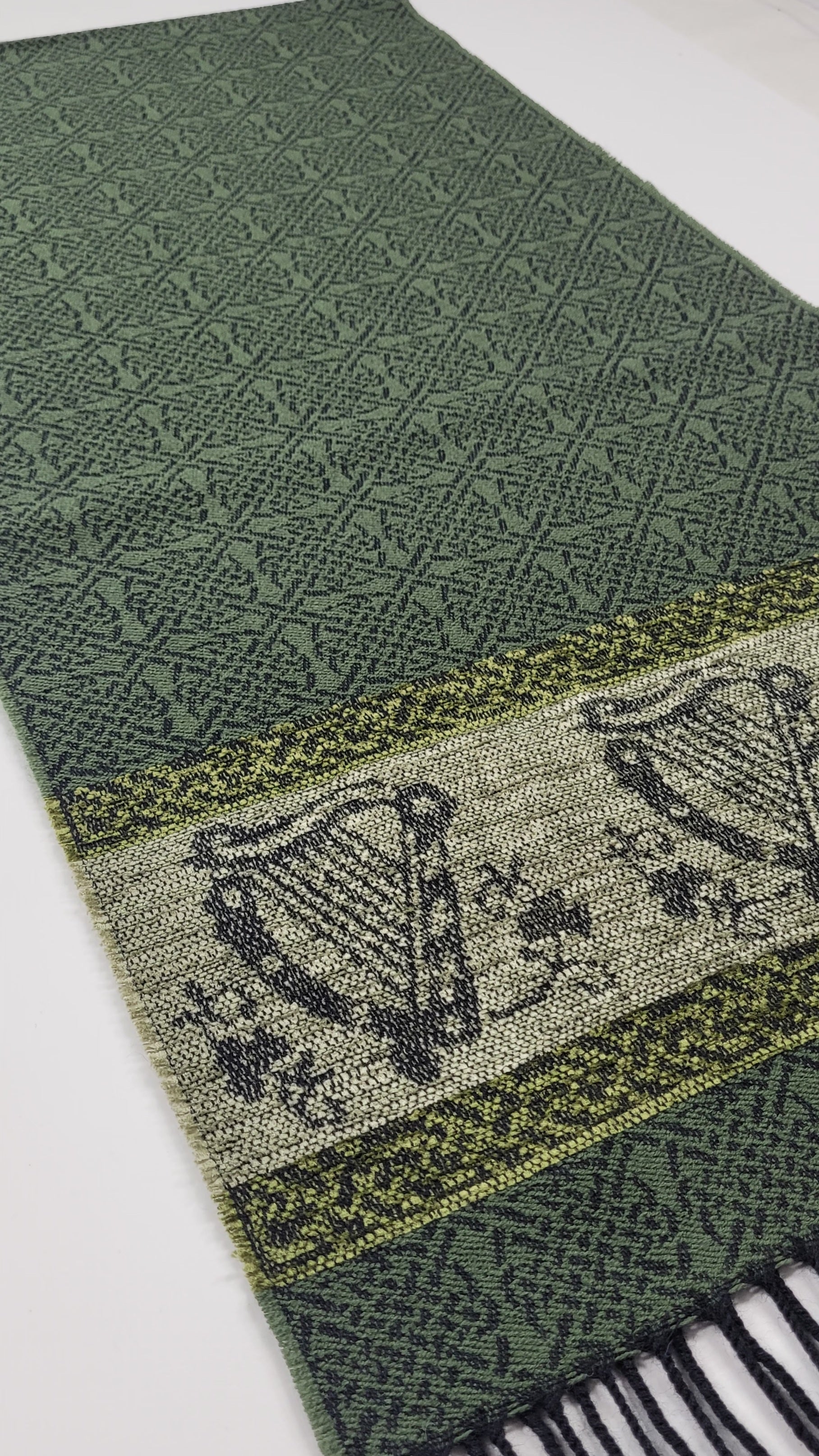 Crafted with meticulous jacquard weaving, this Celtic harp scarf showcases intricate traditional patterns in a sophisticated olive palette. The woven design captures the essence of Celtic heritage with detailed harp motifs that reflect centuries of artistic tradition. Perfect for those who appreciate authentic craftsmanship and cultural symbolism, this versatile accessory elevates any ensemble while celebrating timeless Celtic artistry.
