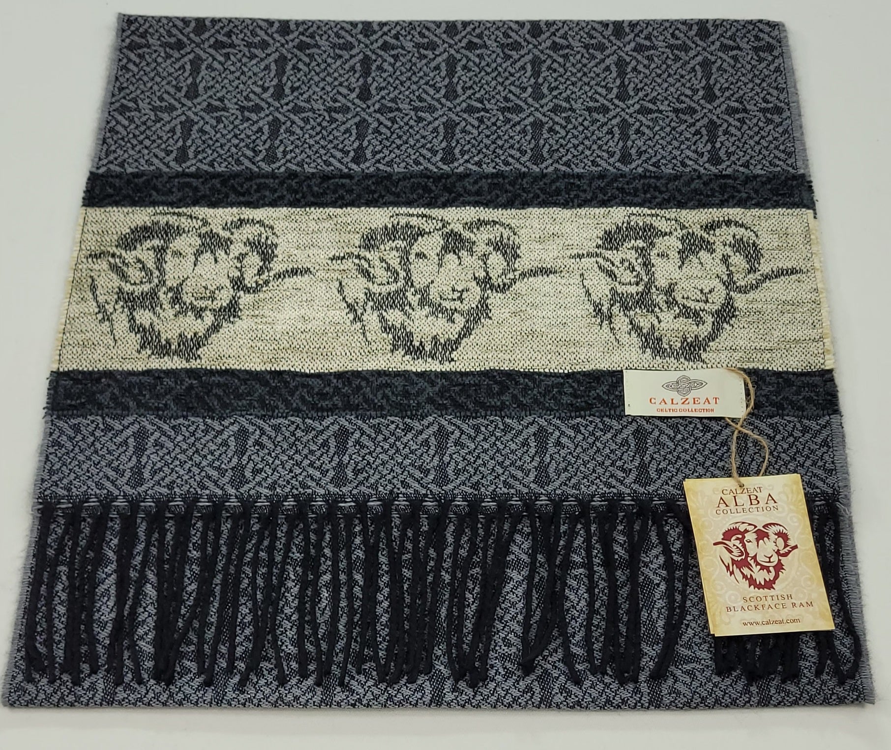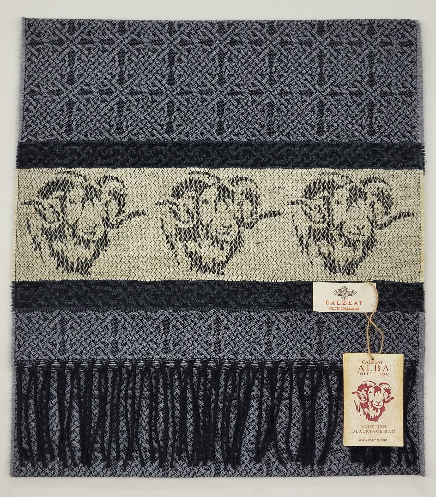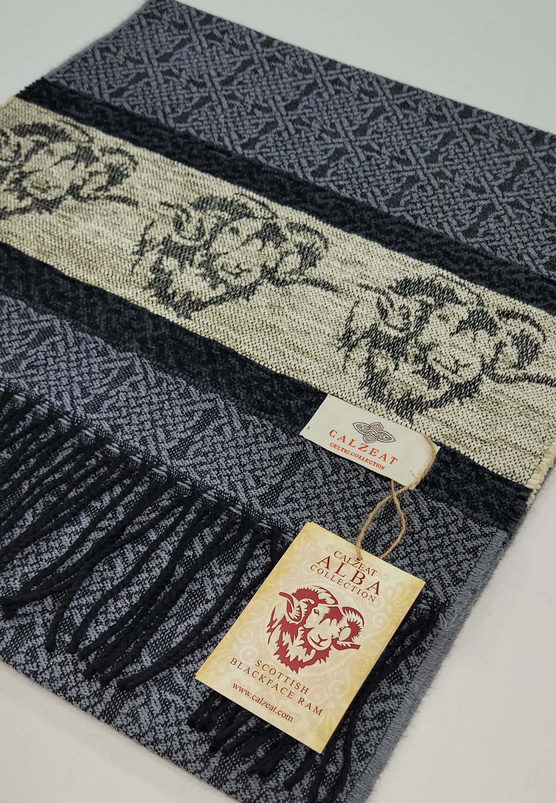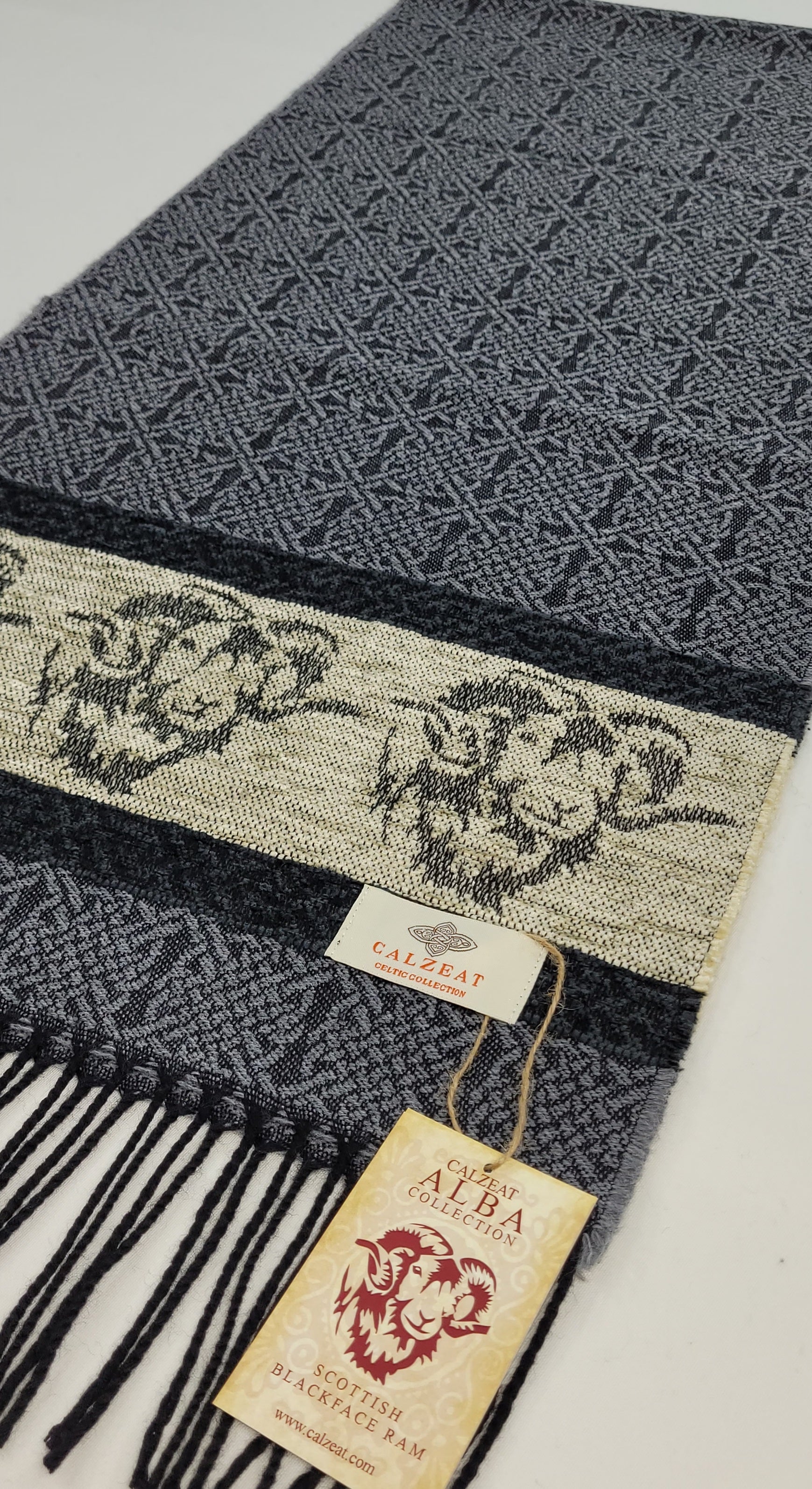 Celtic Alba Ram Silver Jacquard Scarf
