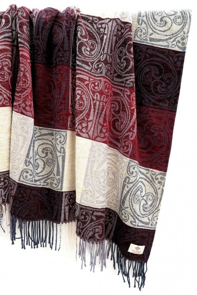 Celtic Spiral Jacquard woven wrap in a luxurious soft blend of Chenille and Pure New Wool. Dimensions: 72 x 200 cms Including Fringes Composition: 67% Chenille/33% Pure New Wool An authentic Scottish product exclusively designed and woven by Calzeat of Scotland. |