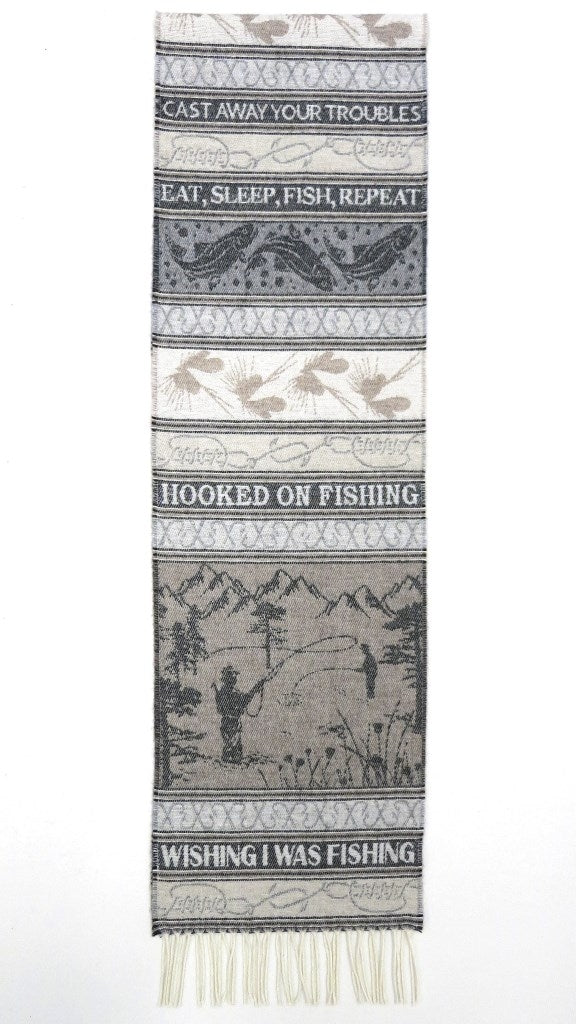 For the Partner who loves Fishing. To keep them warm by the river bank, a beautiful soft scarf in a luxury blend of fibres. Composition: 62% Wool/19% Polyamide/16% Viscose/3% Cashmere Dimensions: 210 x 26 cms including fringes. An authentic Scottish product exclusively designed and woven by Calzeat of Scotland. |