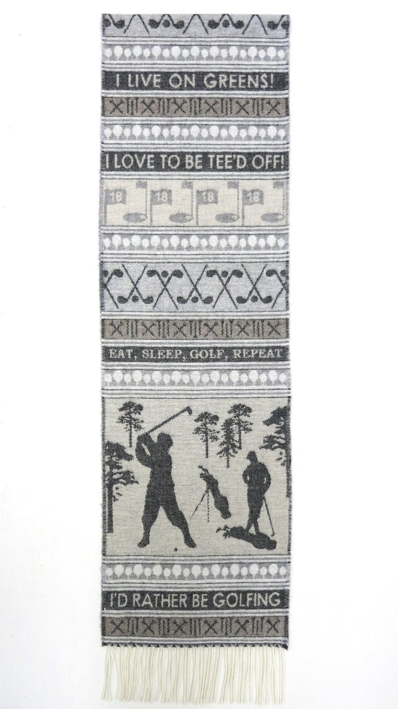A great gift for Golfers everywhere. A beautiful soft scarf in a luxury blend of fibres. Composition: 62% Wool/19% Polyamide/16% Viscose/3% Cashmere Dimensions: 210 x 26 cms including fringes. An authentic Scottish product exclusively designed and woven by Calzeat of Scotland. |