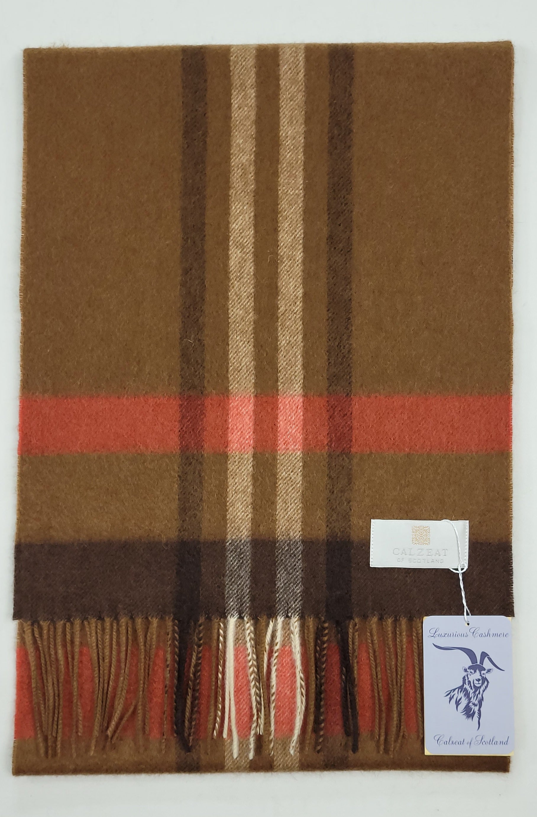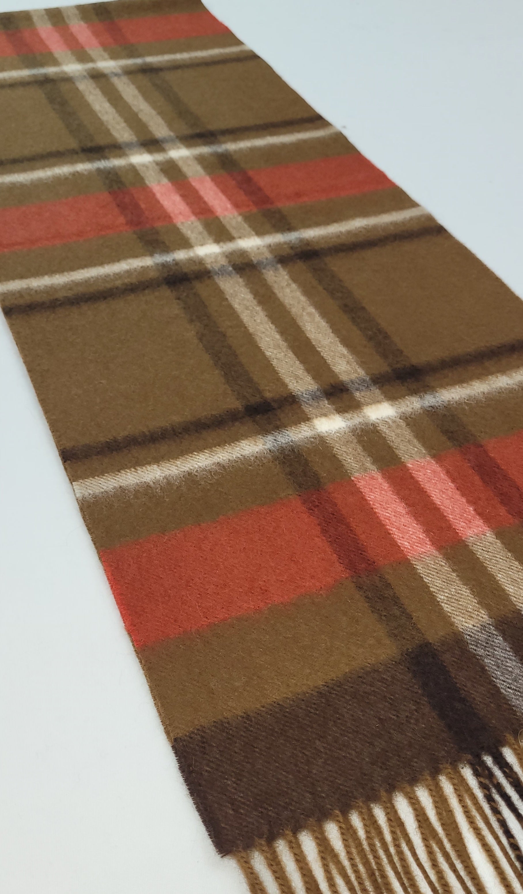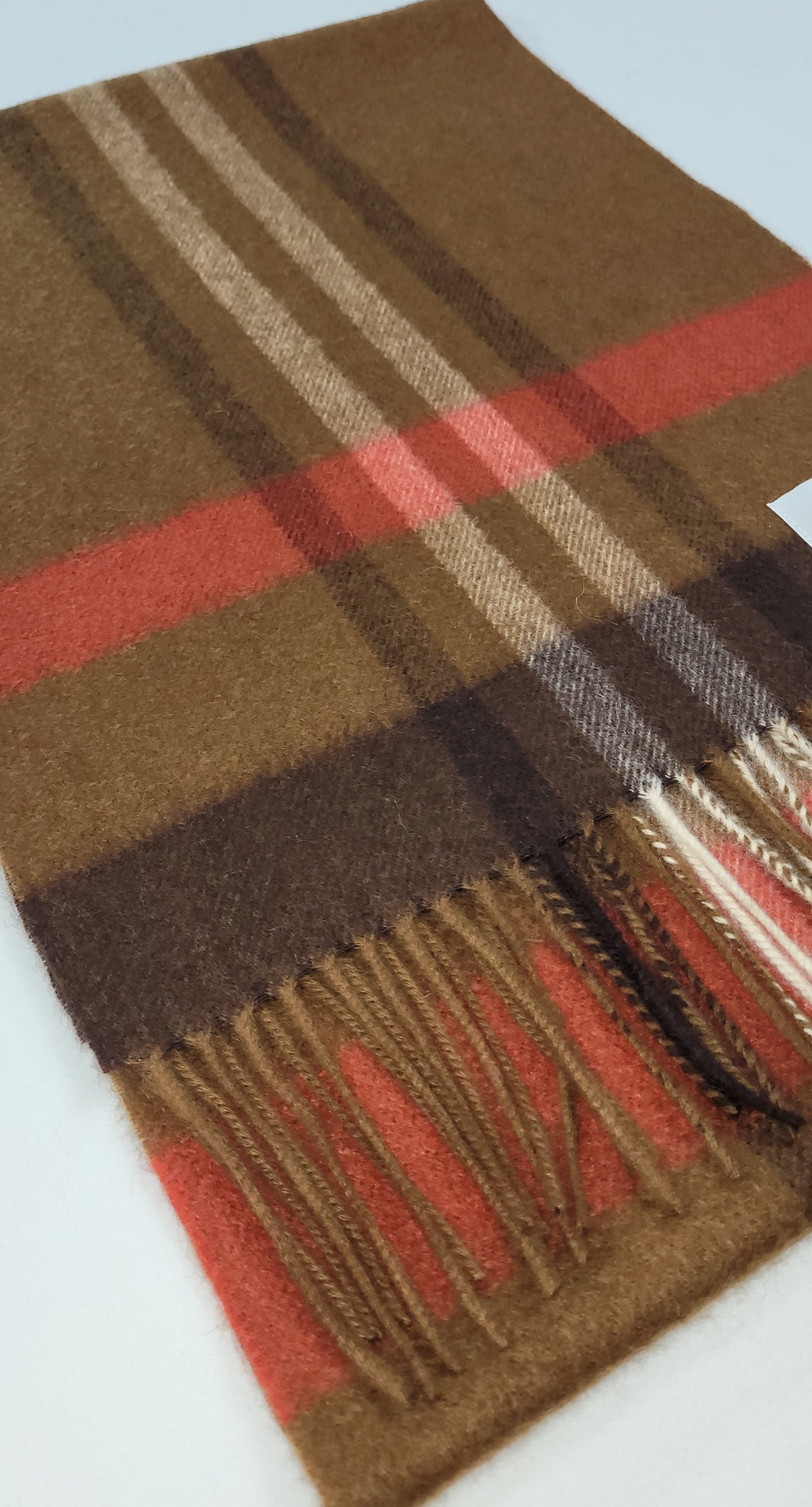 This pure cashmere scarf in shades of Red , Brown and Black is a classic and timeless design perfect for both men & women alike.