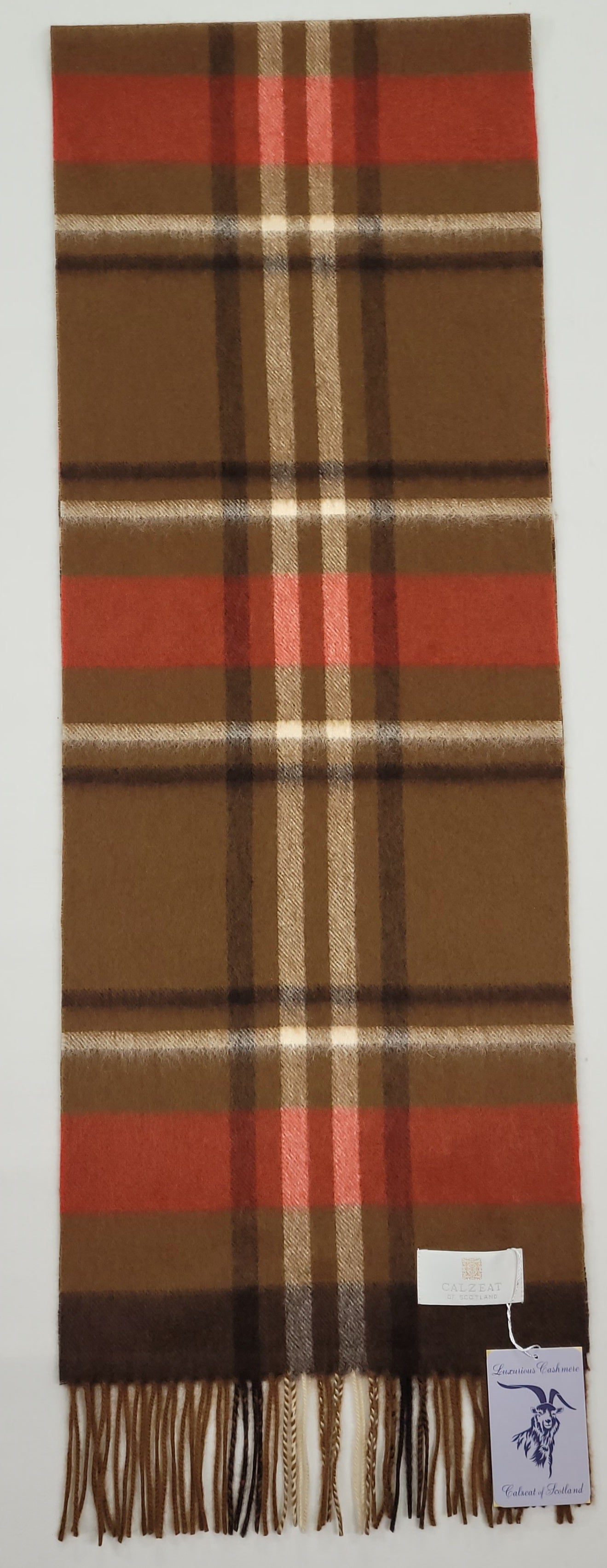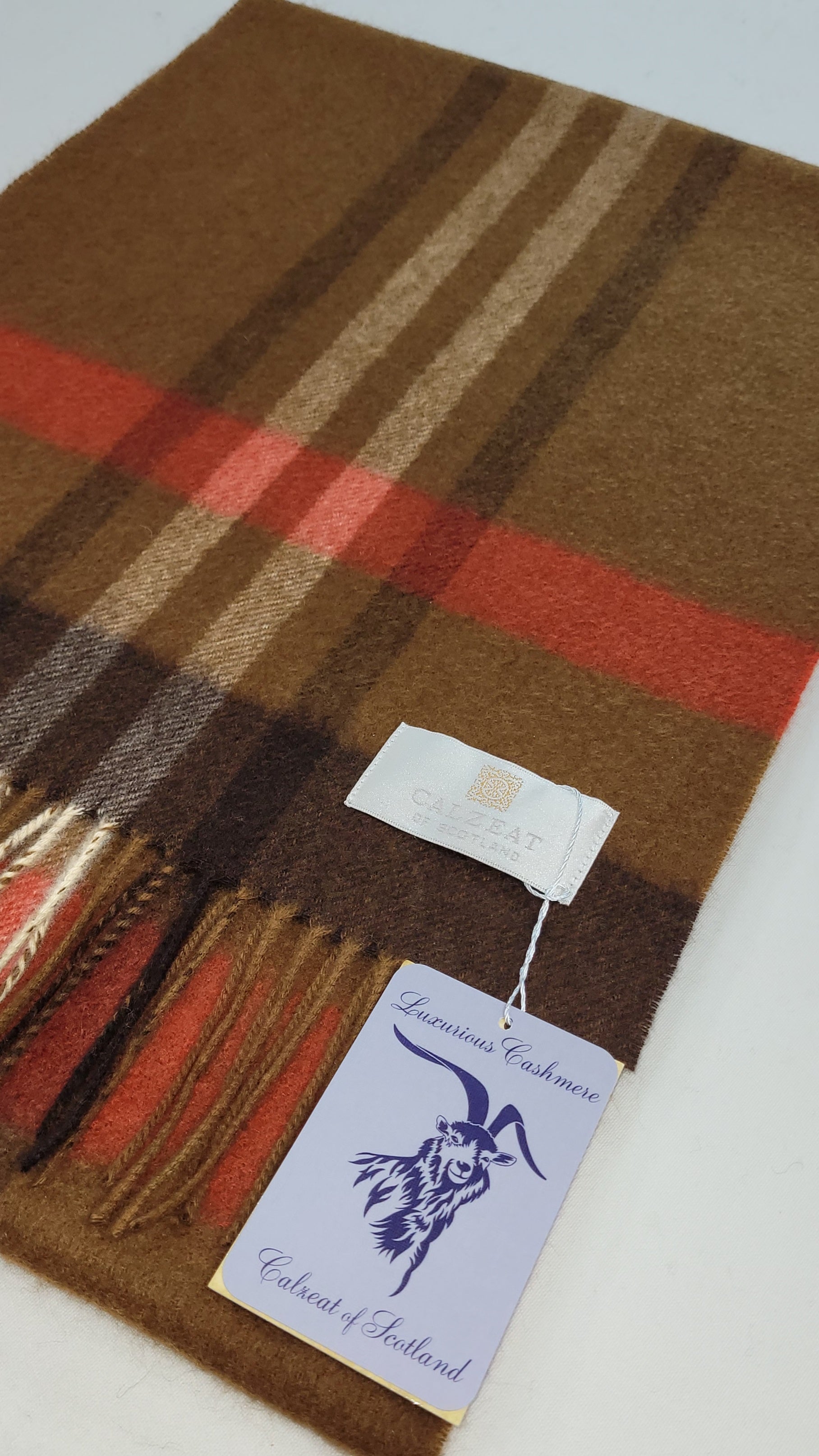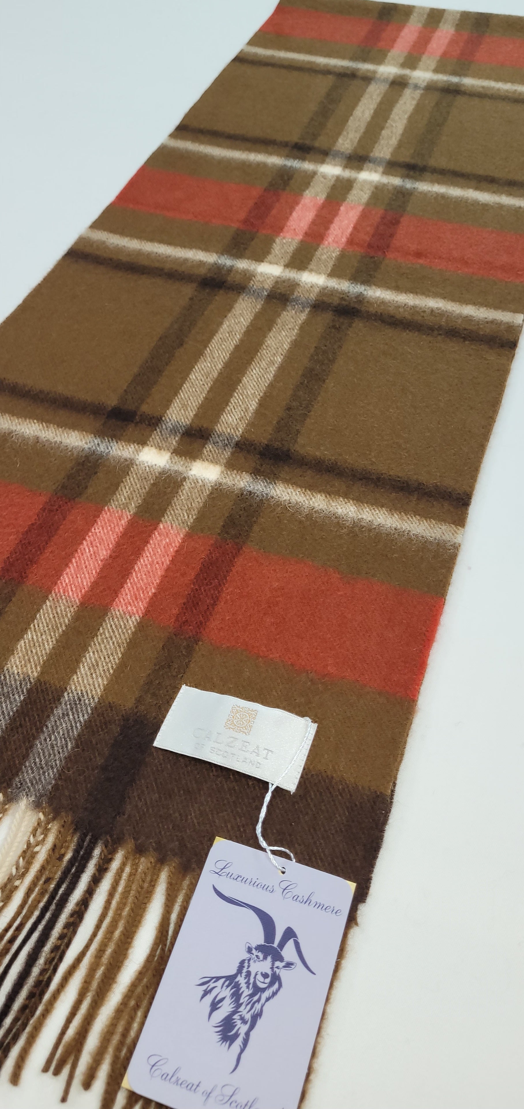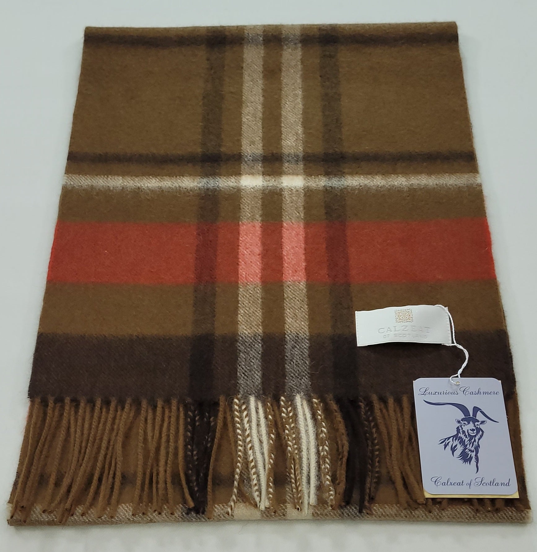 This pure cashmere scarf in shades of Red , Brown and Black is a classic and timeless design perfect for both men & women alike.