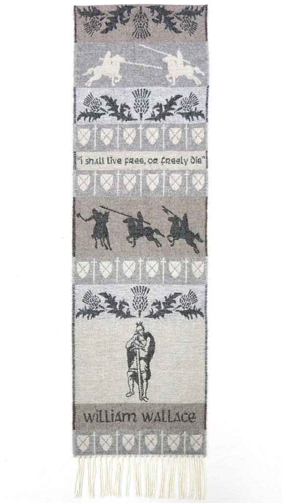 Our Hero's of Scotland Scarf collection. For Scots and people of Scots Descent everywhere, choose from:- Robert the Bruce Rob Roy McGregor William Wallace (Braveheart) These beautiful soft luxury blend scarves will keep you close to home always . Dimensions: 26 x 210 cms Composition: 62% Wool/19% Polyamide/16% Viscose/3% Cashmere An authentic Scottish product exclusively designed and woven by Calzeat of Scotland |