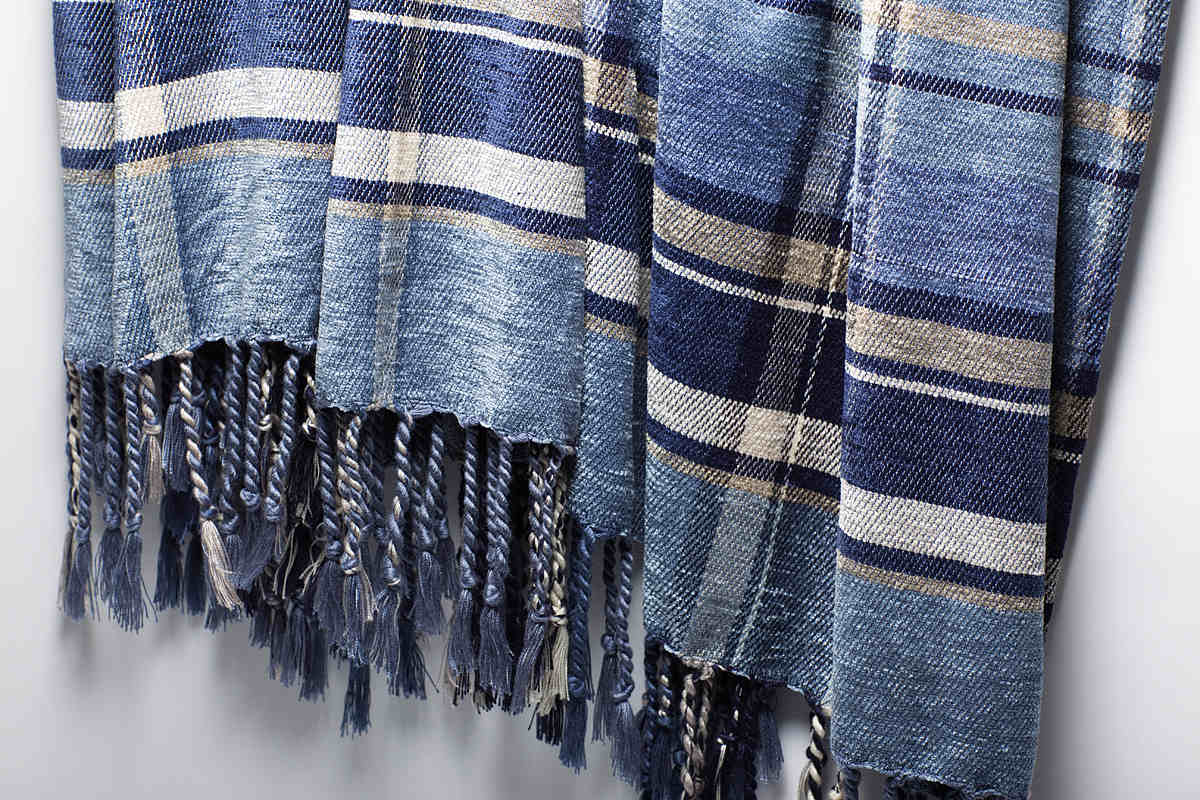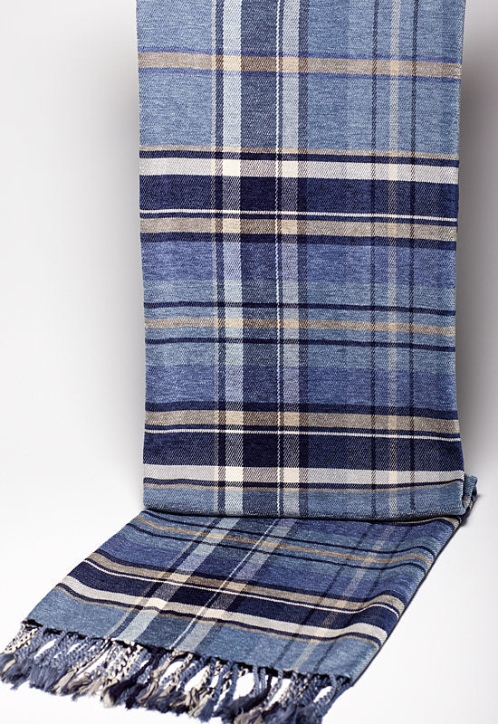 The Biggar Check Denim is the classic cool throw. Dimensions: 150 x 200 cms Including Fringes Composition: 55% Acrylic/45% Viscose Chenille |