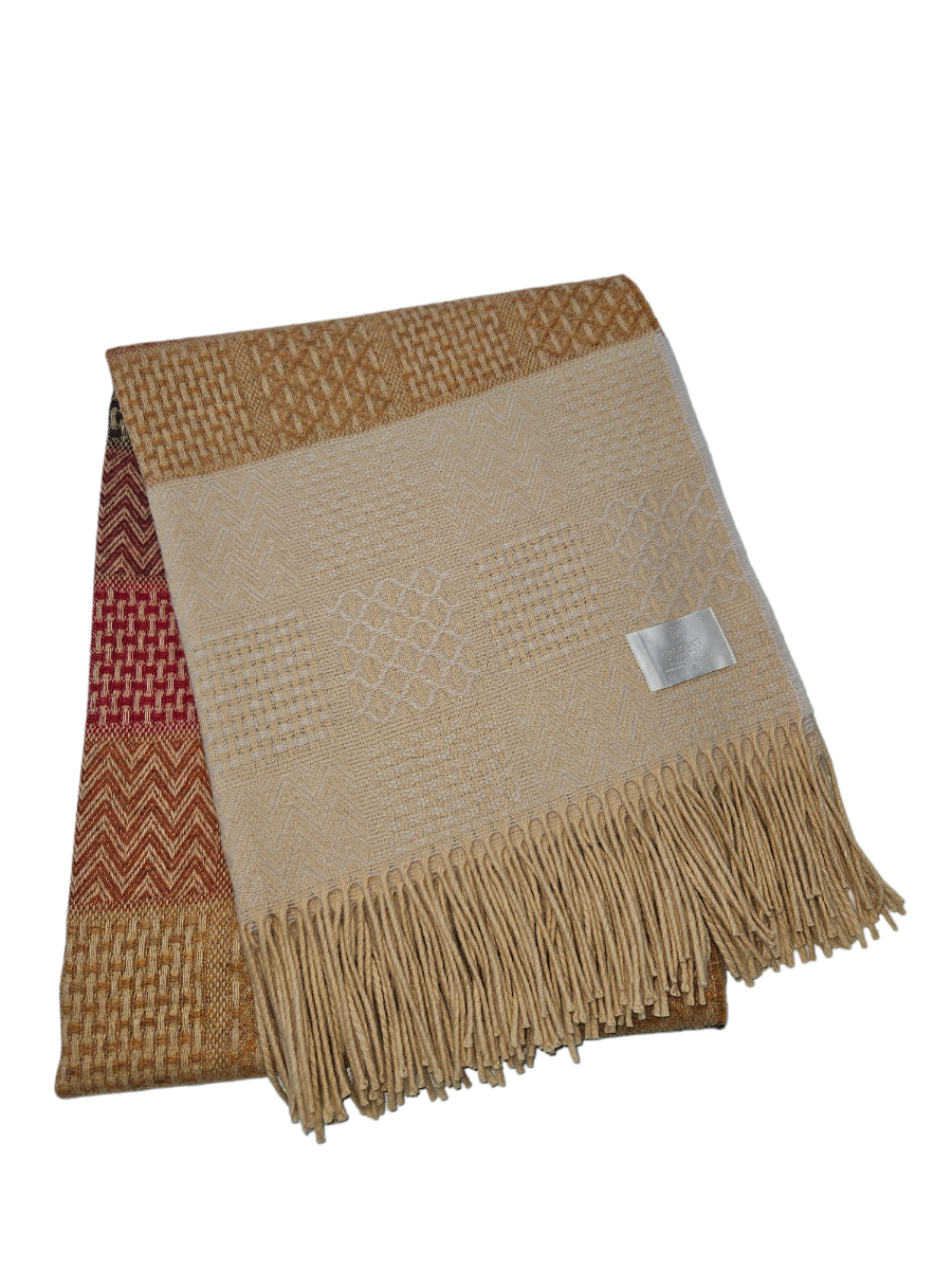 Geometric Throw (Rust Red Stripe) Composition: 100% Wool Size: 136 cms x 187 cms Geometric Throw Made by Calzeat of Scotland |