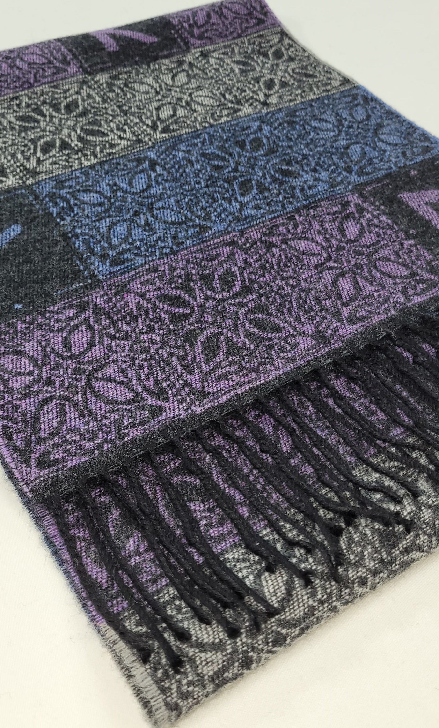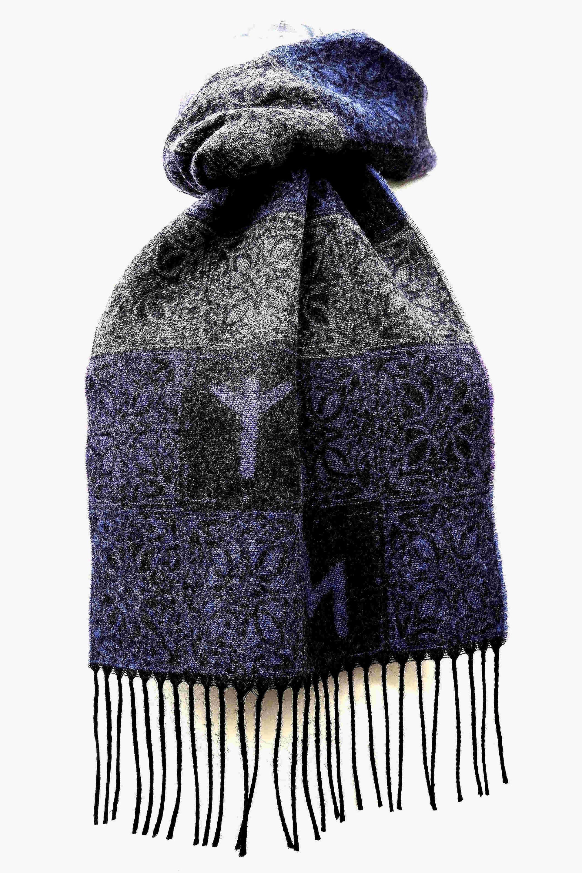 The Viking Runes Aurora Jacquard Scarf is woven in a stunning block style design in a combination of blue, purple and silver grey. Dimensions: 35 x 190 cms including fringes Composition: 100% Wool |