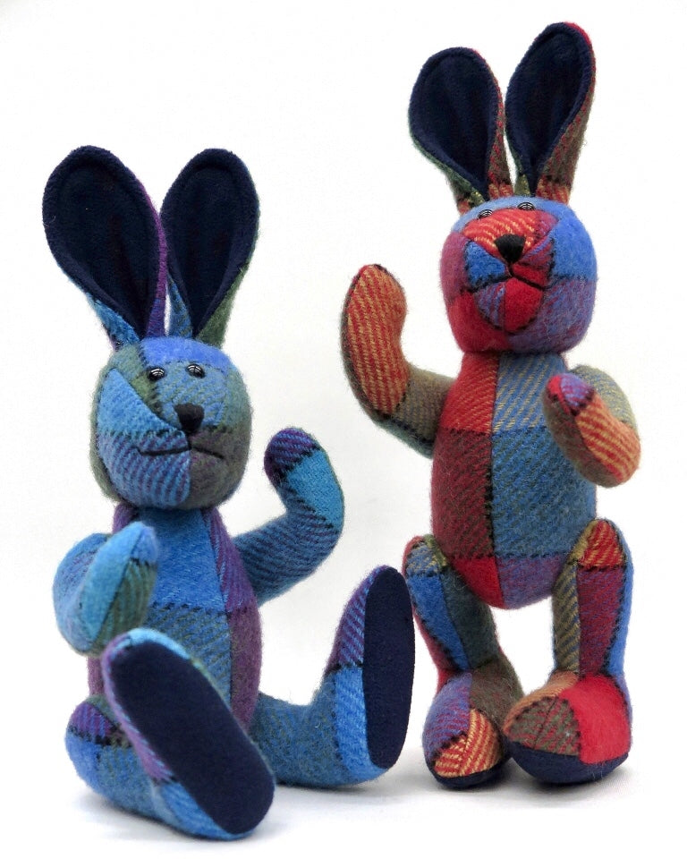 Calzeat bunny rabbits are all hand made in Scotland by talented crafts people and each one is unique due to the placement of the check pattern