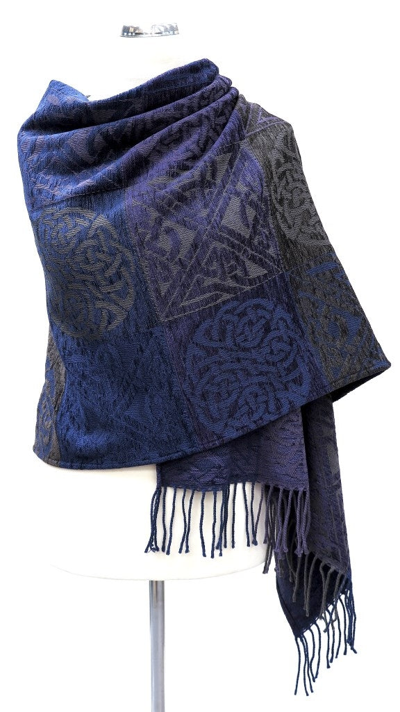 You will see we have combined two different Celtic knots in our Pewter design and used a sumptuous rich array of slate grey, royal blue and deep purple. Our wraps are made from our beautiful throws so colour block placement may vary.