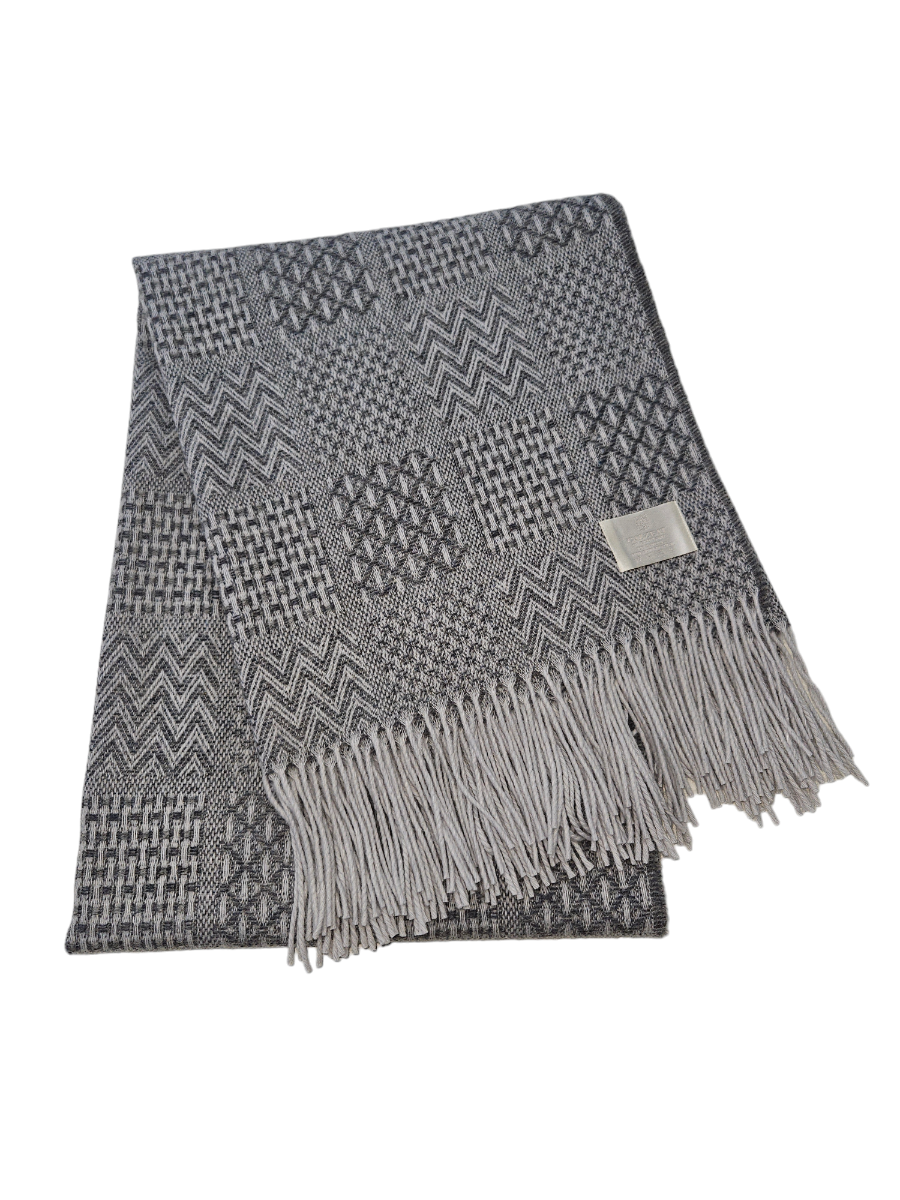 Geometric Throw (Grey) Composition: 100% Wool Size: 136 cms x 187 cms Geometric Throw Made by Calzeat of Scotland |