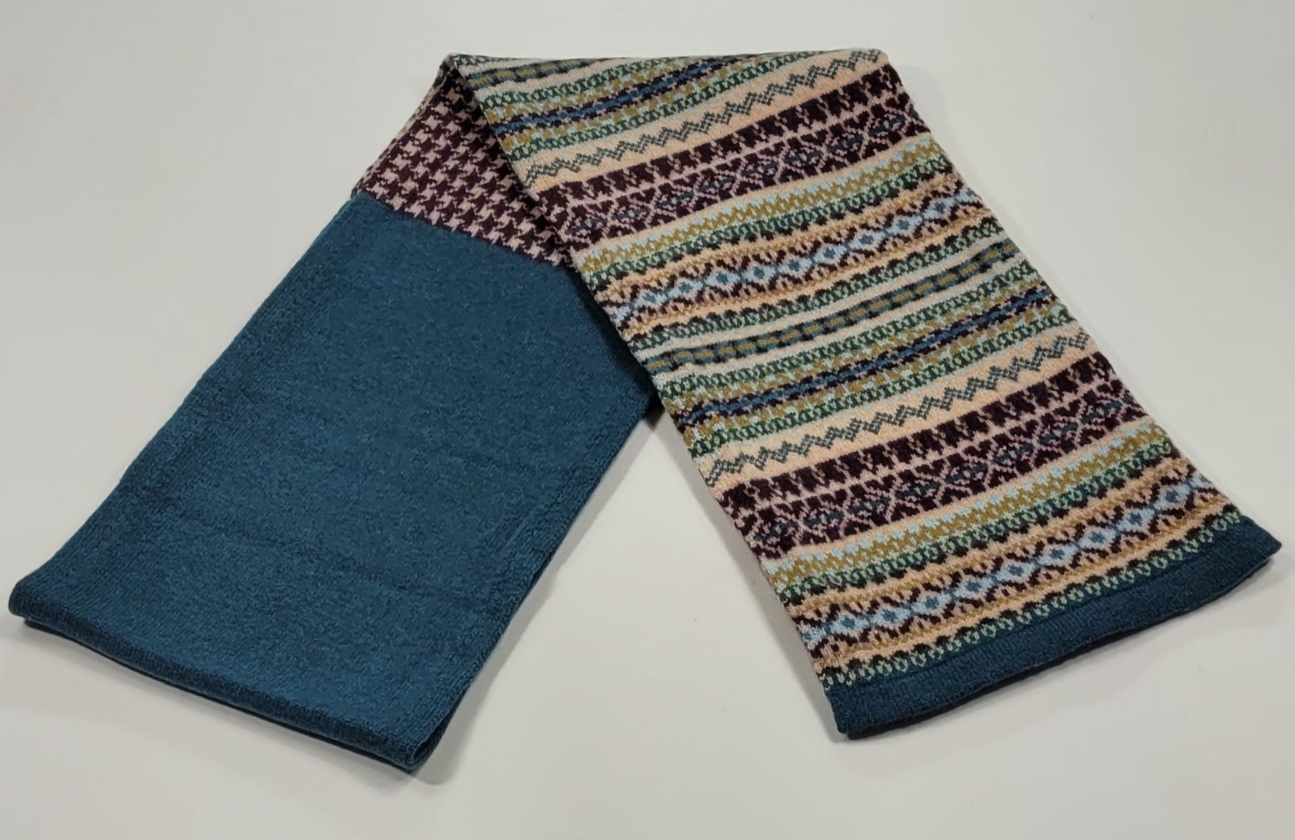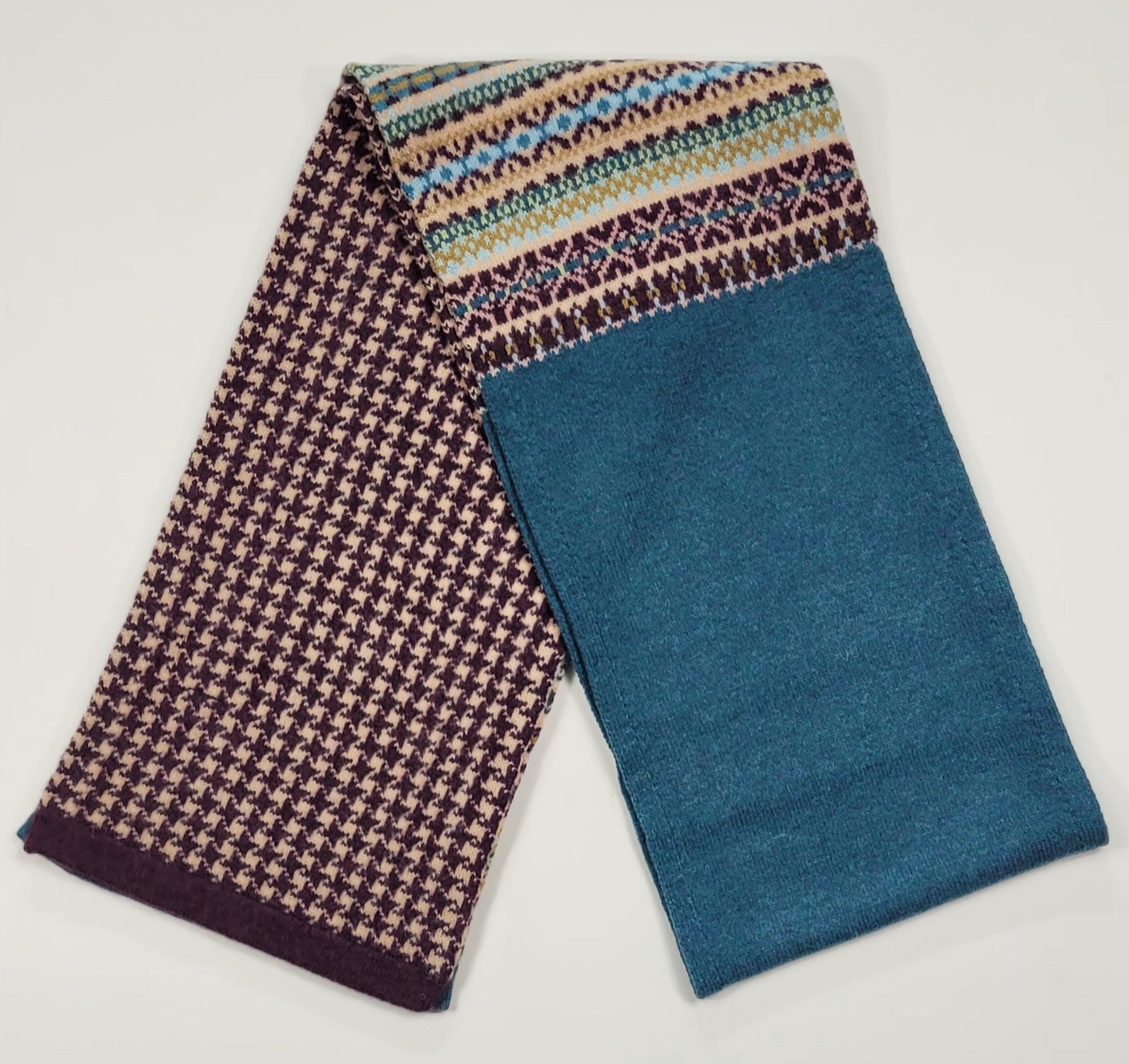 Kerse Fairisle/Houndstooth Knitted scarf Green