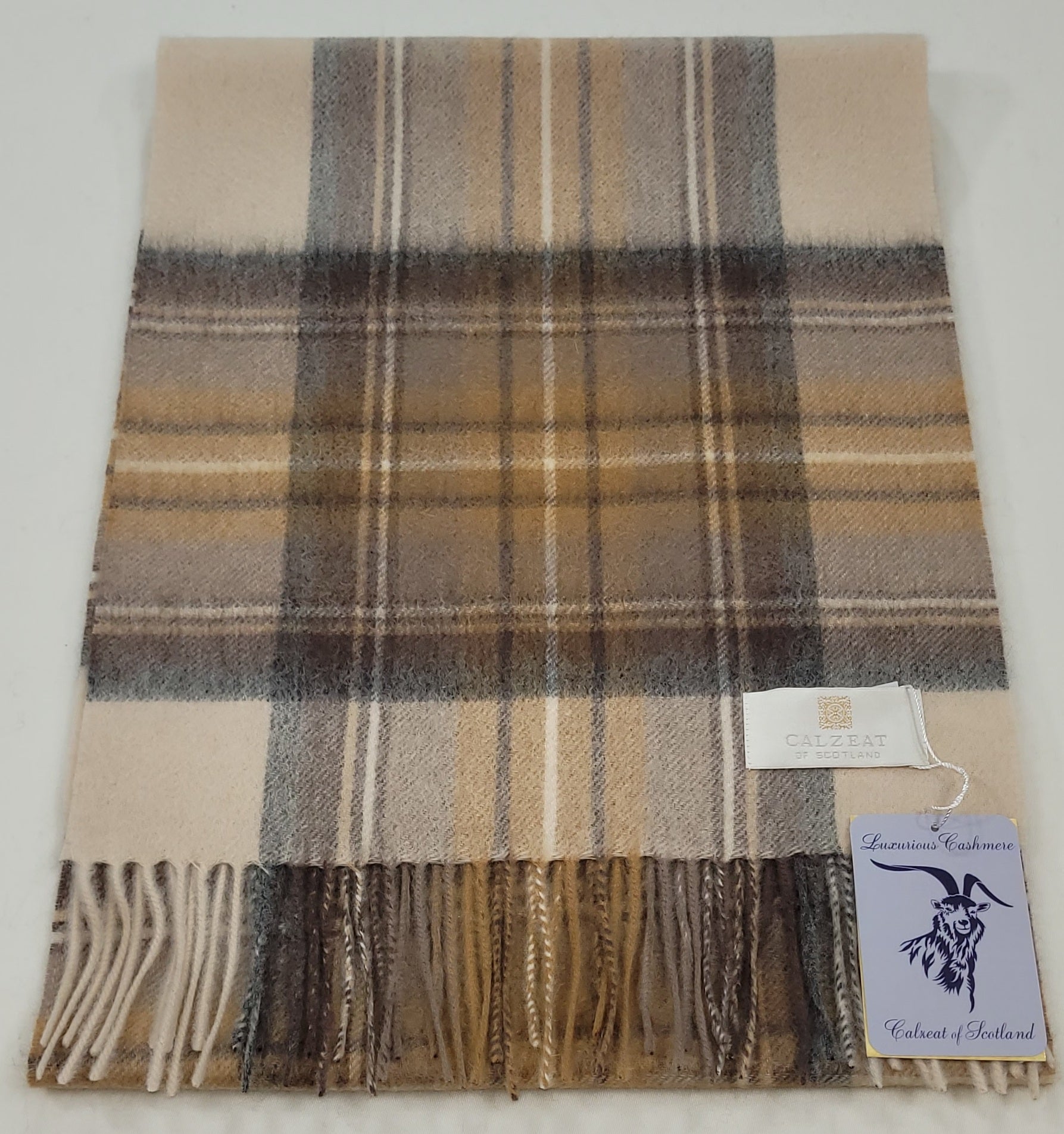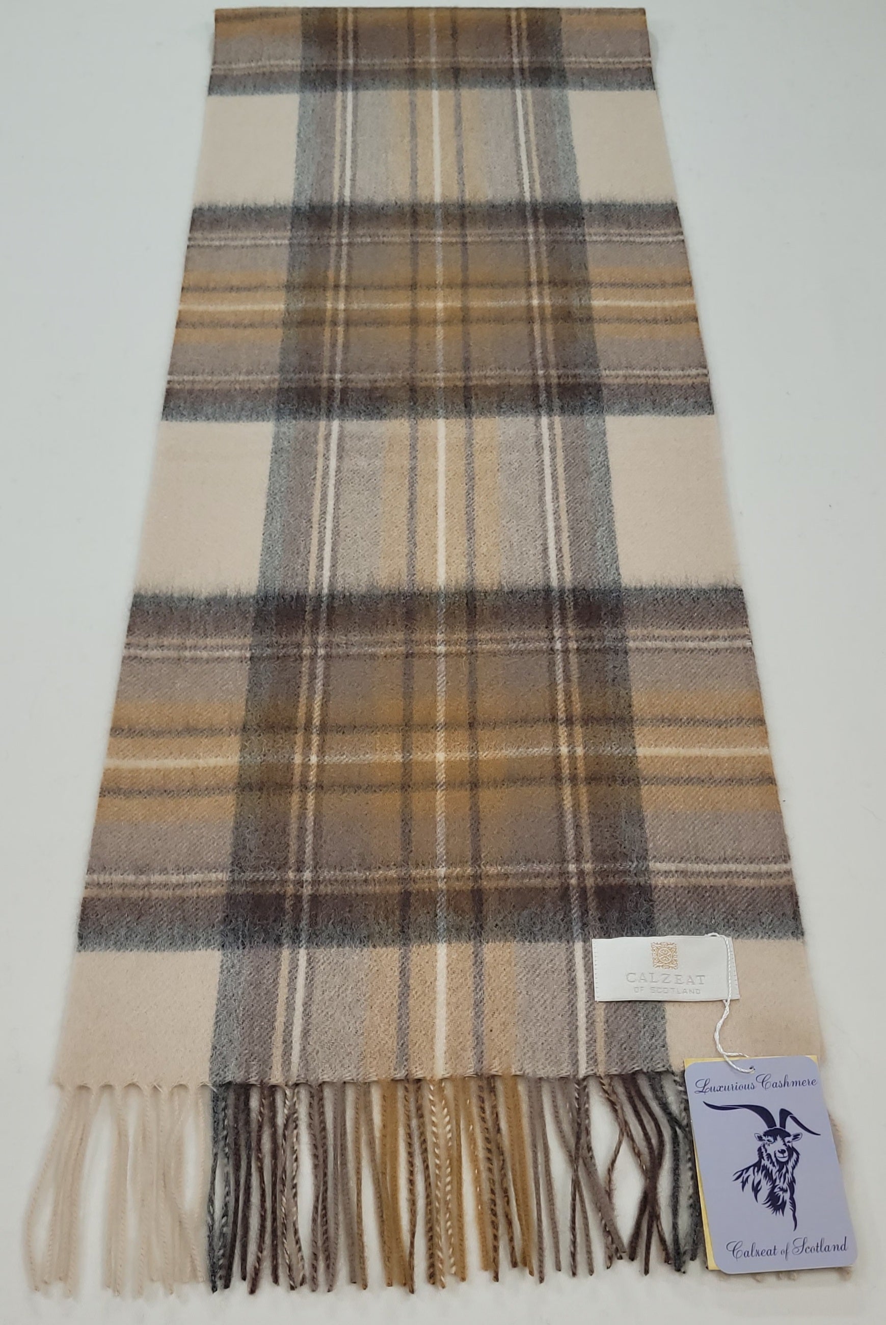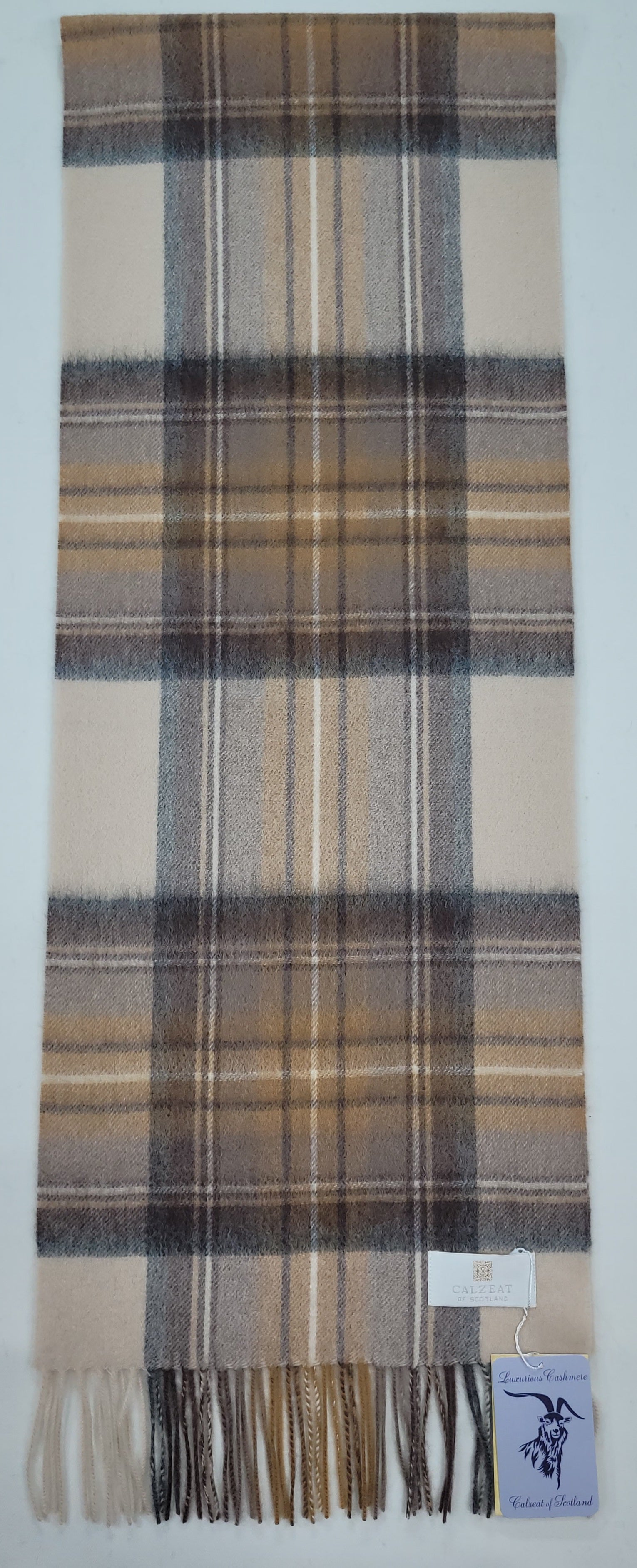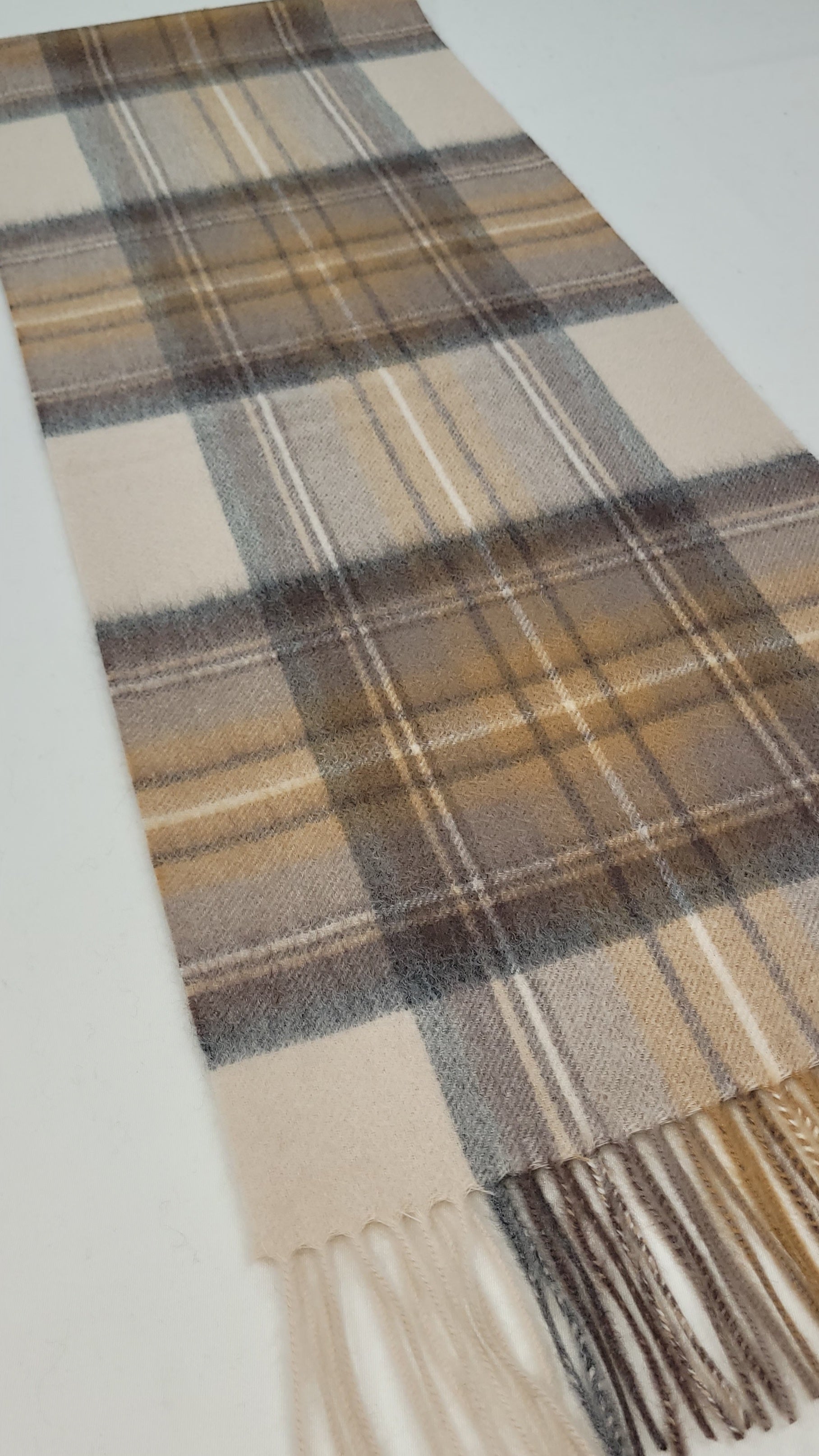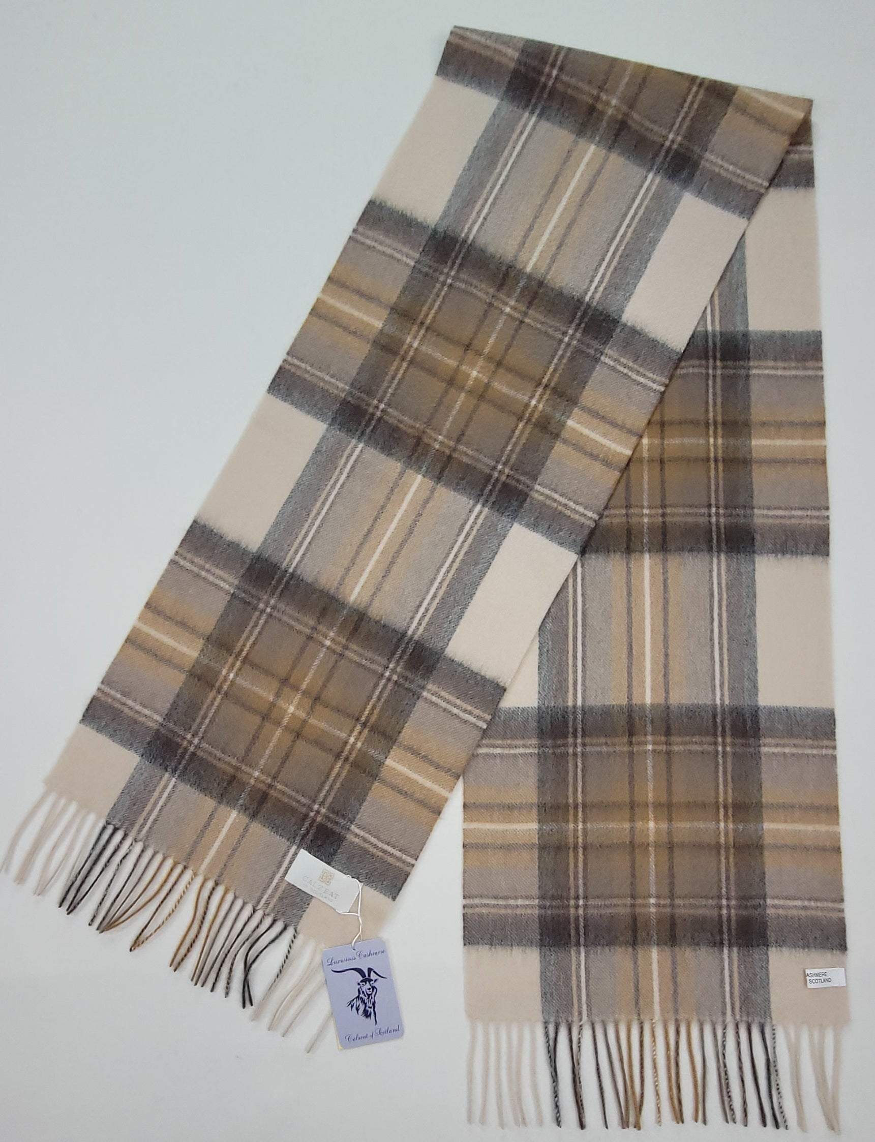 This pure cashmere scarf in shades of Beige, Tan, Cream and Grey, is a classic and timeless design perfect for both men and women alike. Dimensions: 180 x 30 cms Composition: 100% Cashmere Made in Scotland |