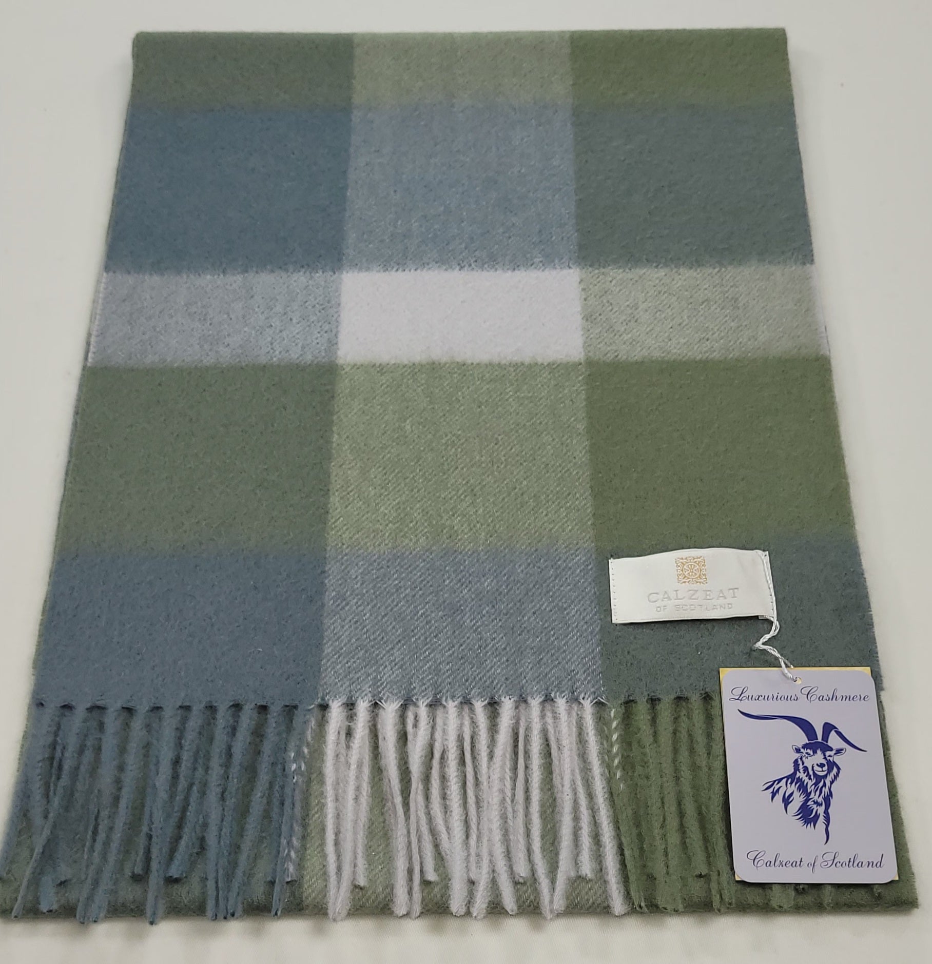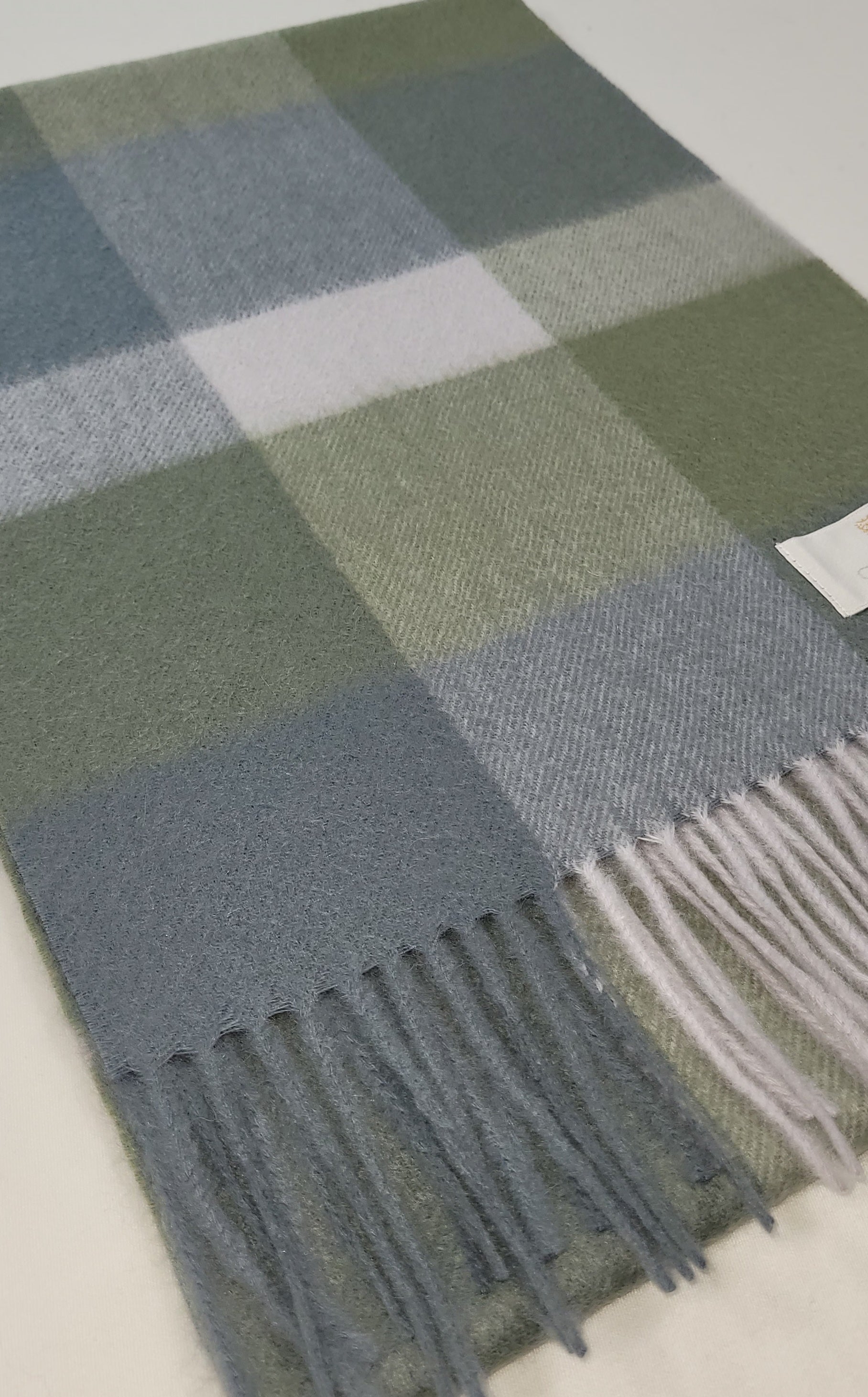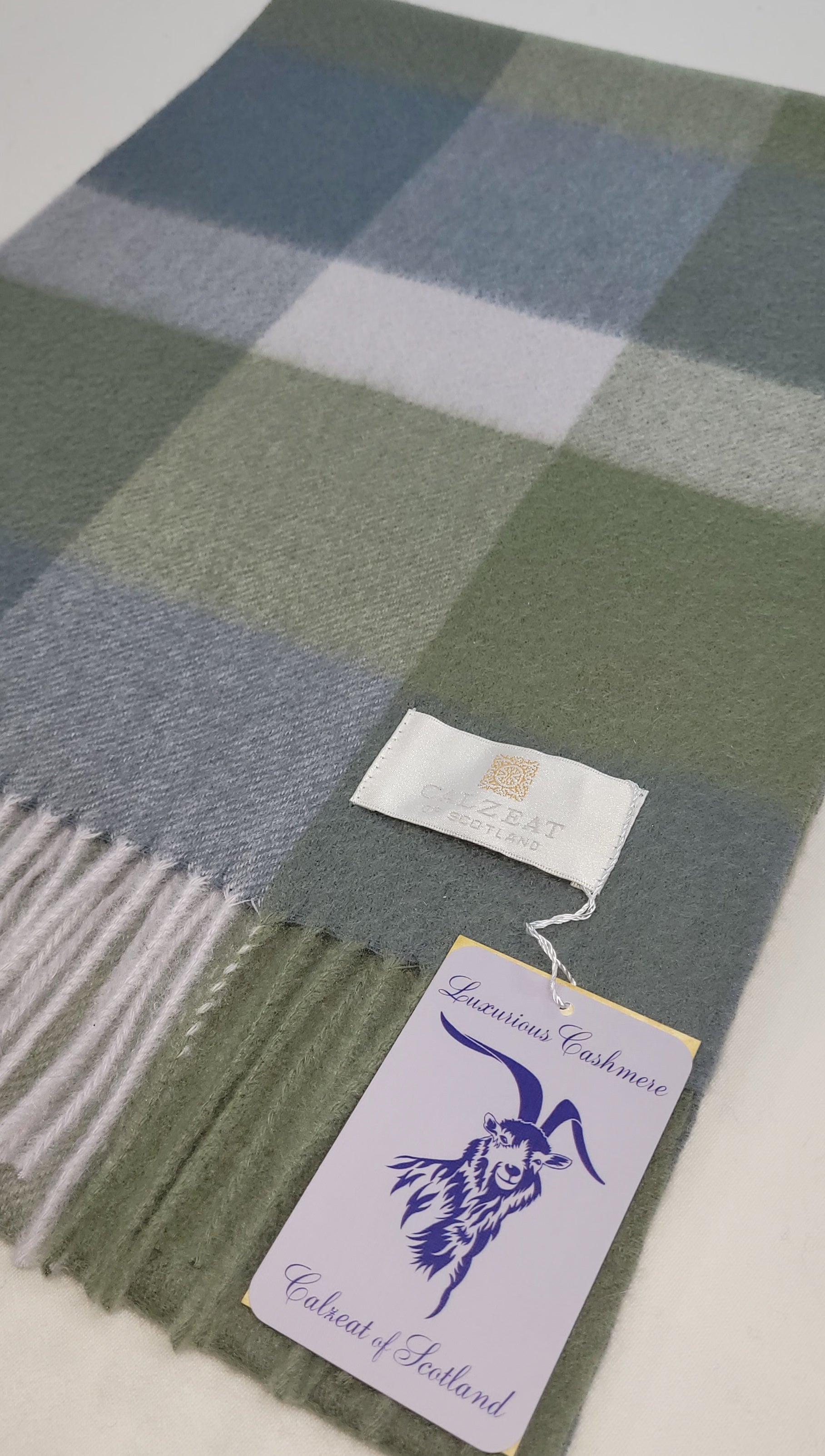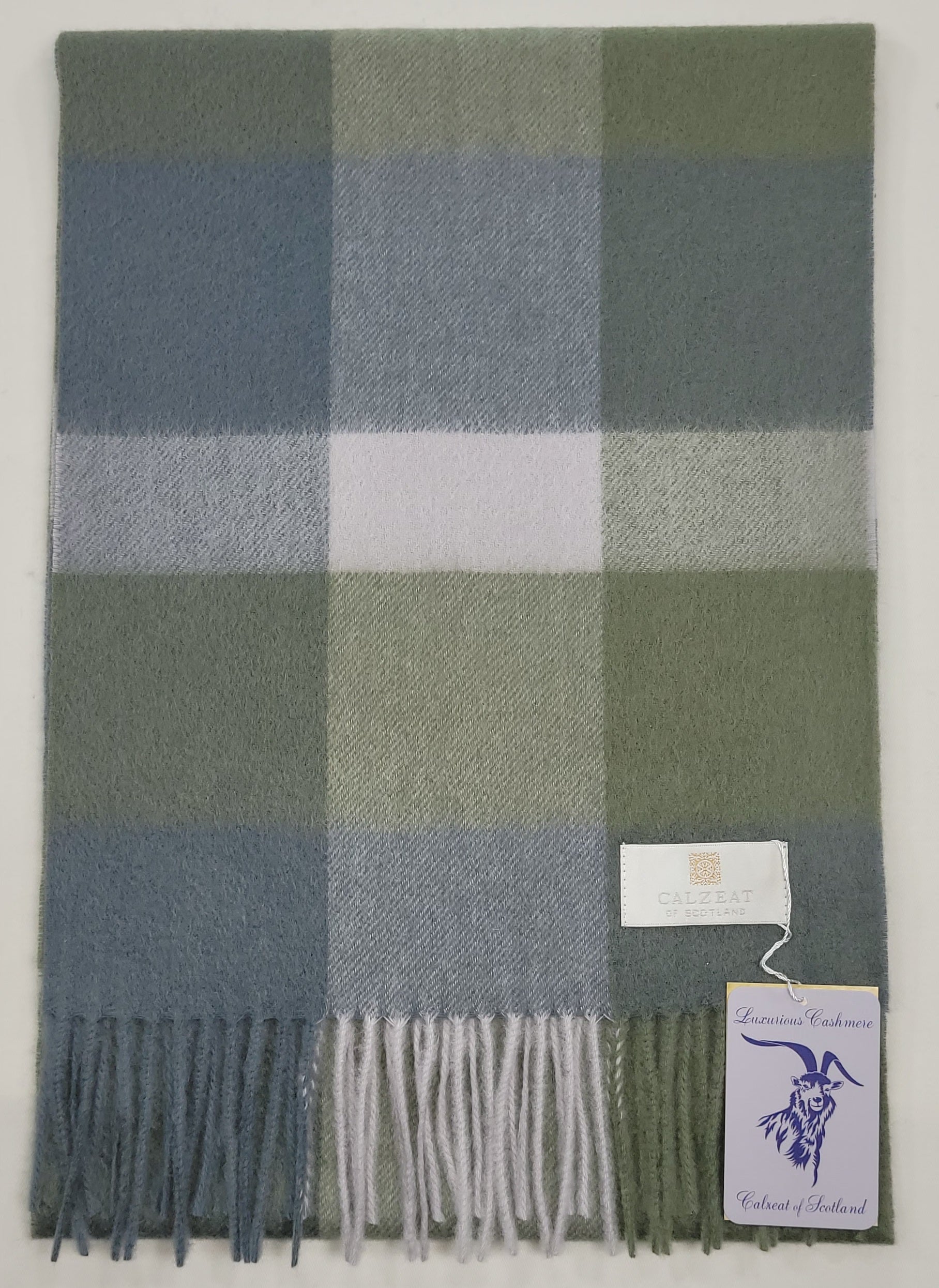 This pure cashmere scarf in shades of Green and Grey and White is a classic and timeless design perfect for both men and women alike. Dimensions: 180 x 30 cms Composition: 100% Cashmere Made in Scotland |